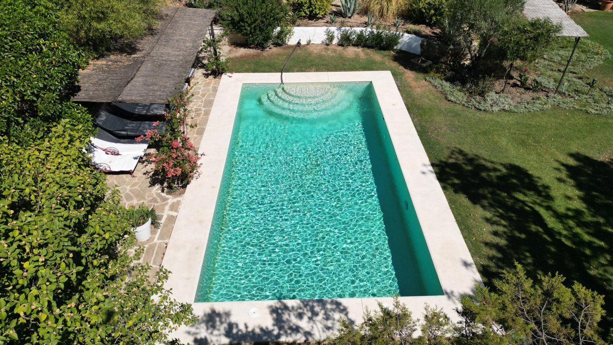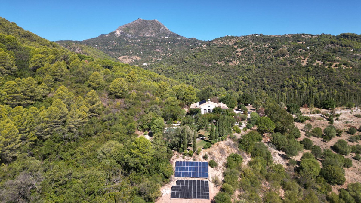 A unique country house, located in a lush natural environment, green perennial surroundings and wide open horizons as far as the eye can see...Unique for its aesthetic, which reminds of a Tuscany villa and it is designed to enjoy family life, with ample spaces full of air where inddor and outdoor living blend together, where the protagonists are the light and landscape...And unique because of its modernity and energetic self-sufficiency, an specially comfortable house where one can live anytime of the year, under-floor heating all throughout, air conditioning,… all these commodities are sustained by a large solar panels installation of over 56 sqm (strategically located so they are not seen from anywhere), an extensive 24KW solar installation, two 10kw convertors, and 20KW battery, plus car charging connection. Additionally, the property has its own water supply from a well, it is an area with a lot of water, the river passes very close by, where one could go and bathe in the summertime...The house was built in 2000, and it is South oriented. There are 7 bedrooms with their own bathroom, and several multipurpose spaces (study, workshop, library,…) Surrounded by ample and lush gardens, a large lawn, and a lovely pool area with ample sunbathing terraces and an ice bath for the brave under us. In addition, at the back of the house, is a large vegetable garden and a chicken pen..A private drive, bordered by cypresses, leads up to the house with ample parking. The main door opens to a light entrance hall, giving way to the living room with large glass doors. Connected is the generous covered terrace, which becomes the living in summertime. A separate dining room is connected to the fully fitted German SieMatic kitchen, and pantry with three fridges, and a freezer. Kitchen and dining open up towards an East facing terrace with outdoor kitchen facilities. The views toward the Sierra Crestellina are breathtaking from here. On the other ground, floor wing is a library or TV room. Fully fitted with shelving for the books. Also, an ample guest bedroom with fireplace, built-in wardrobes, and en-suite bathroom. This bedroom opens up to the garden..On the first floor is a spacious landing that could be used as an additional sitting room or painting studio. The large master suite with slanted ceiling. It has a walk-in dressing room with a skylight and an en-suite bathroom. The windows look out over the gardens and the abundance of flowers overgrowing the covered terrace on the ground floor. The master suite connects to another bedroom with a bathroom. This can be used as an annex to the main, yet is also accessible from the landing to use as an independent bedroom. Furthermore on this floor a large office (or extra bedroom) with built-in shelving and on the other side of the landing, 2 more en-suite bedrooms..The lower garden level, with over 300m2 build size, comprises the laundry room, a large workshop/studio, a bodega, a storage room, and a machine room. On the East side is a staff apartment with a living kitchen, bedroom, bathroom, and private terrace and garden. Plus another large guest suite with a bathroom and kitchenette also opens up to the garden..Features of this luxury country house for sale in Andalusia include the outdoor swimming pool, three fireplaces, automatic irrigation in the gardens, parquet and travertine flooring, double-glazed windows, and a BBQ area. Portuguese decorative tiles. Extensive areas are set up for a kitchen-ready vegetable garden. Water through a private well..This exclusive property is located just 15 minutes from Gaucin, 30 minutes from the beach, 45 minutes from Marbella and Sotogrande, and 1.5 hours to Málaga International Airport.