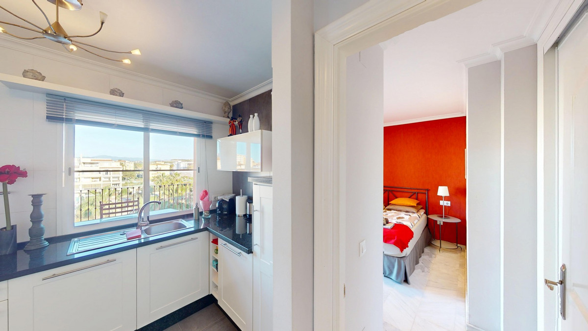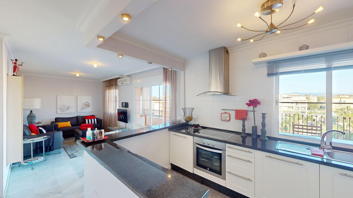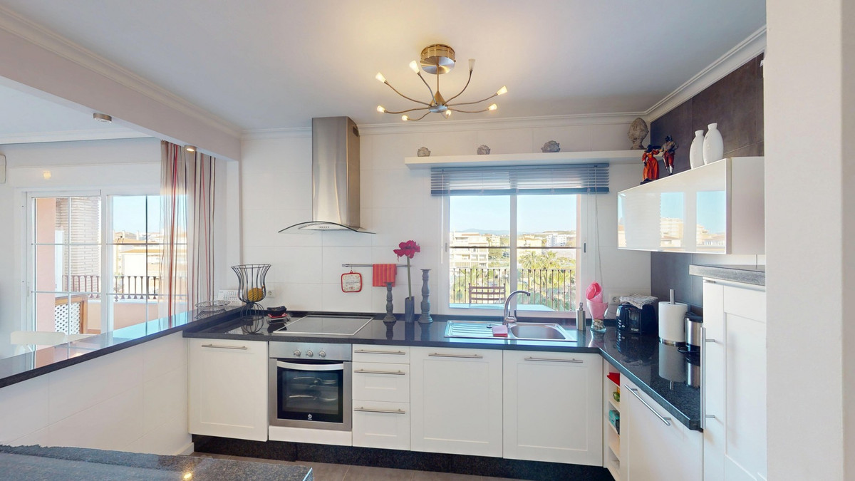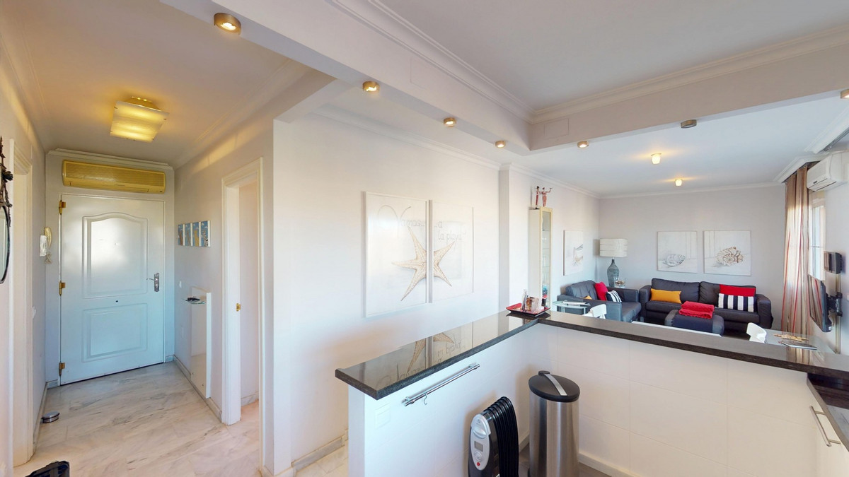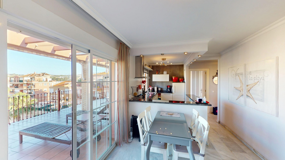 Welcome to this charming penthouse in the coastal village of Mezquitillaa perfect blend of comfort, functionality, and Mediterranean lifestyle. This well-designed apartment stands out with two private terraces, both offering lovely sea views and plenty of space to relax, dine, or entertain outdoors. The bright and airy living room flows seamlessly into the kitchen and opens directly onto one of the terraces, creating a wonderful indoor-outdoor feel. One of the two bedrooms also has direct access to the terrace, bringing in plenty of natural light and sea breezes. Both bedrooms are equipped with built-in wardrobes, and the entire apartment benefits from air conditioning for year-round comfort. The kitchen is compact yet stylish, featuring sleek white cabinetry, black countertops, and stainless steel appliances. The open-plan layout and thoughtfully chosen décorwith warm tones and pops of colorcreate a welcoming and contemporary atmosphere. The bathroom is modern and well-appointed, offering a combination bathtub and shower, a vessel sink, and quality fixtures that make the space both functional and pleasant. A private parking space and a separate storage room offer added convenience, and the well-kept community includes a shared poolideal for a refreshing dip on warm days. Located just a short stroll from the beach, local restaurants, shops, and other amenities, this penthouse is ideal for those looking for a full-time residence, a relaxing holiday home, or a solid investment on the sunny coast. We are pleased to be able to present this dream property to you soon, either personally or via virtual viewing. Because this world is unique - just like our Axarquía. In Andalusia. On the Costa del Sol. Here, on the sunny side of life...