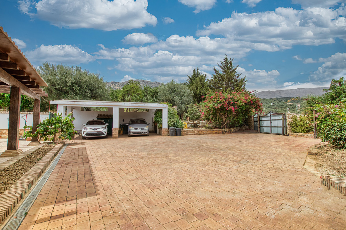 Discover your own Andalusian paradise in this magnificent estate, a haven of peace and comfort designed to enjoy life to the fullest. Set on a generous 1,574 m² plot, surrounded by olive trees and nature, this property offers unparalleled privacy and an idyllic lifestyle just minutes from all amenities.The exterior is undoubtedly the star of the show. An impressive covered porch is perfect for family meals, gatherings with friends, or simply relaxing in the shade. This area extends to a welcoming patio.The pool area is a true oasis. With a wall that guarantees privacy, you will find a spectacular deep blue swimming pool and a large sunbathing area with loungers. It is the perfect place to unwind and enjoy the sun all year round.The interior of the main house exudes a cozy rustic charm. The living-dining room, dominated by a warm stone-framed wood-burning fireplace, is the ideal space for winter evenings. The open and functional kitchen maintains the traditional style of the house with its wooden cabinets and is fully equipped.The main house, measuring 128.20 m², has three spacious bedrooms and two bathrooms, one of which is en suite. As an added bonus, the property also includes a small, completely separate guest room, perfect for accommodating family and friends with their own space and privacy.This property has been updated with high-quality materials and systems with comfort and efficiency in mind:Versatile climate control: Enjoy the perfect temperature all year round thanks to the combination of a wood-burning fireplace and efficient air conditioning units with Inverter technology (cooling/heating) installed in the living room and all three bedrooms.Efficiency and savings: Domestic hot water is generated by a forced solar panel system, supported by a large capacity indoor tank (400lts), which guarantees an abundant, sustainable supply and significant savings on bills. It also has a photovoltaic installation for self-consumption that generates surplus energy, reducing the electricity bill to practically zero.Insulation: All windows are high-end PVC (Eurofutur system) with Climalit double glazing, providing excellent thermal and acoustic insulation, which translates into a more comfortable and quiet home.The Abbreviated Information Document is available upon request. Expenses: Taxes (ITP or VAT+AND) + notary and registration fees. SDM.