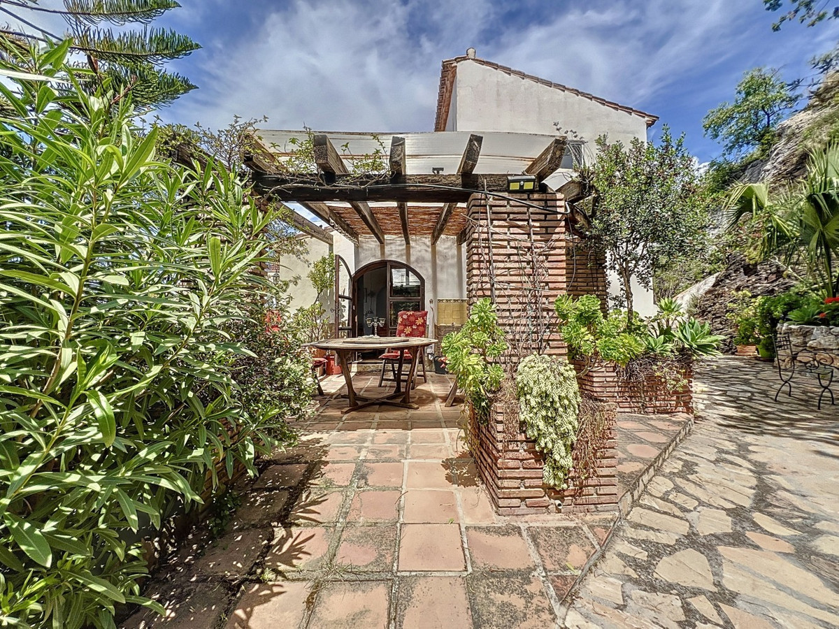 This charming Spanish country house in Sayalonga/Árchez, Málaga, blends traditional character with modern comfort all set against a backdrop of breathtaking views. The property offers a constructed area of 199 m2 and 148 m2 of living space spread over two floors, with three bedrooms and two bathrooms ideal for families or guests. Inside, rustic features dominate: exposed wooden beams under whitewashed ceilings add warmth and authenticity to every room. Terracotta tiles emphasize the Mediterranean style and create a harmonious overall aesthetic. A major highlight is the well-thought-out heating solution: a modern pellet stove in the hallway efficiently warms the entire house. Additionally, there's a cosy wood-burning stove in the living room and an infrared panel heater for extra comfort on cooler evenings. The bathrooms also feature electric infrared heaters to ensure a pleasant, warm atmosphere. Both the living room and bedrooms include built-in wardrobes that offer practical storage while blending seamlessly with the style. Plush furniture in warm red tones, decorative mirrors, colourful artworks, and personal collections give the space a relaxed, bohemian vibe. A striking archway connects the interior to one of the terraces and opens up to stunning views of the countryside. The kitchen is both charming and functional, with cream cabinets, granite countertops, modern appliances, and a patterned tile backsplash. A decorative extractor hood completes the picture. The two bathrooms are individually designed: one features a bathtub and artistic rustic tiles, while the other has a modern look with clean lines and contemporary fittings. Both complement the character of the house. The bedrooms reflect the Andalusian style, with wrought iron beds, wooden furniture, warm lighting, and the aforementioned built-in wardrobes that add comfort and order. Outside, several terraces offer spectacular views of the sea, rolling hills, and white villages. One of the terraces is covered and offers expansion potential ideal for one or two additional rooms. The outdoor area also includes a private pool, various seating areas, an outdoor kitchen, and a well-kept garden perfect for sociable evenings or quiet moments in nature. This villa combines timeless architecture with personal touches, thoughtful amenities, and spectacular views a true taste of Andalusian living. We are pleased to be able to present this dream property to you soon, either personally or via virtual viewing. Because this world is unique - just like our Axarquía. In Andalusia. On the Costa del Sol. Here, on the sunny side of life...