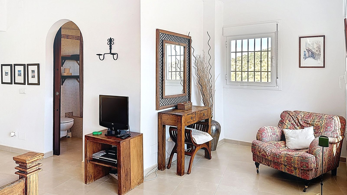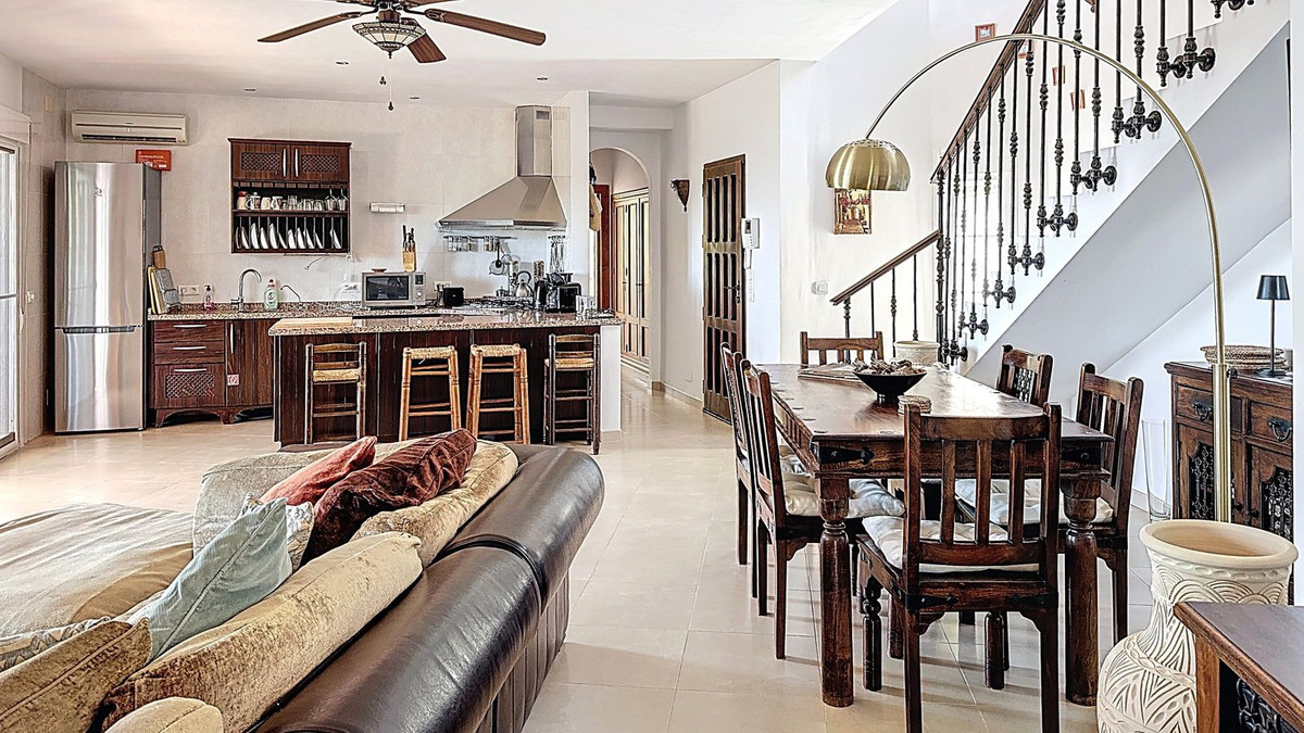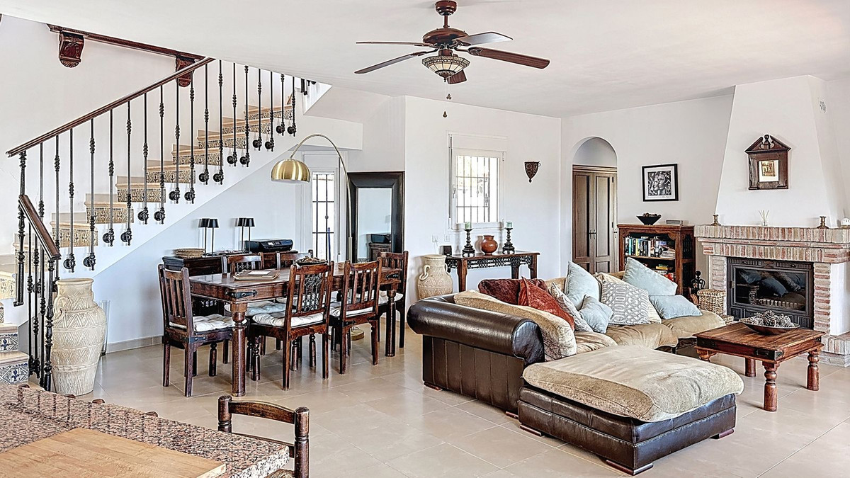 Are you dreaming of a life under the Spanish sun, surrounded by peace, space and ultimate comfort? This bright and elegant villa, located between Vélez-Málaga and the charming village of Arenas, offers exactly that. With panoramic views over the lush valley and the shimmering Mediterranean Sea, you can enjoy the very best of Andalusia every single day. Large sliding doors in the living room, dining room and modern open-plan kitchen flood the interior with natural light and open directly onto the covered terrace, where outdoor living blends seamlessly with indoor comfort. The inviting living room with its fireplace creates a cosy atmosphere on cooler evenings, while air conditioning ensures a pleasant climate throughout the year.