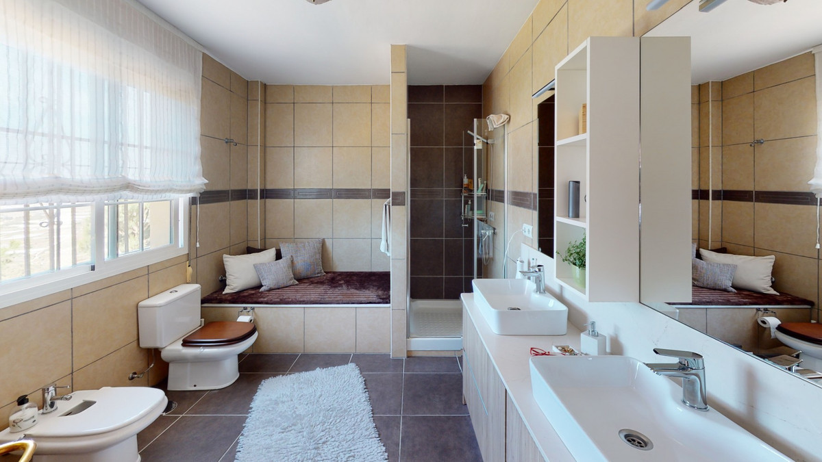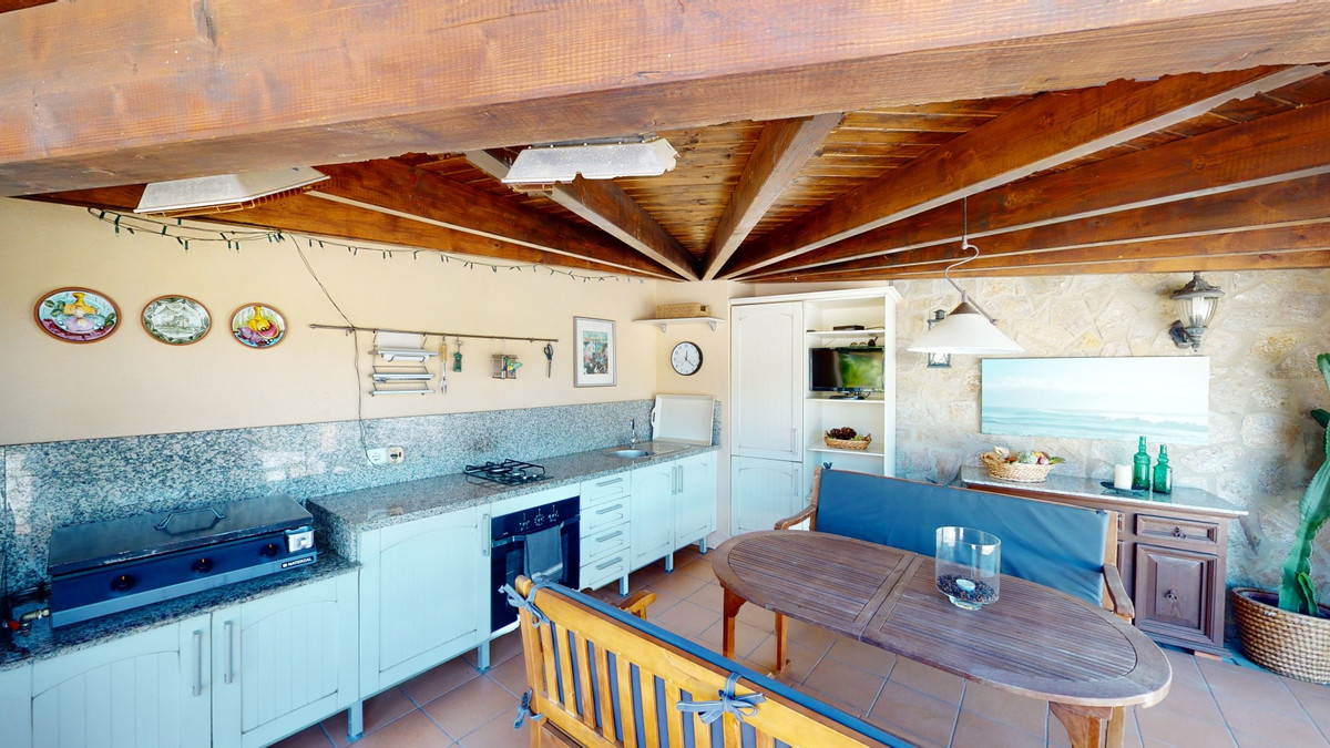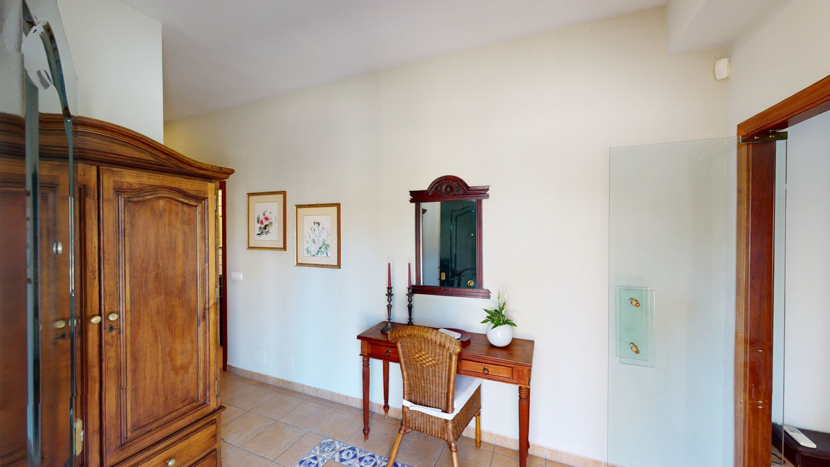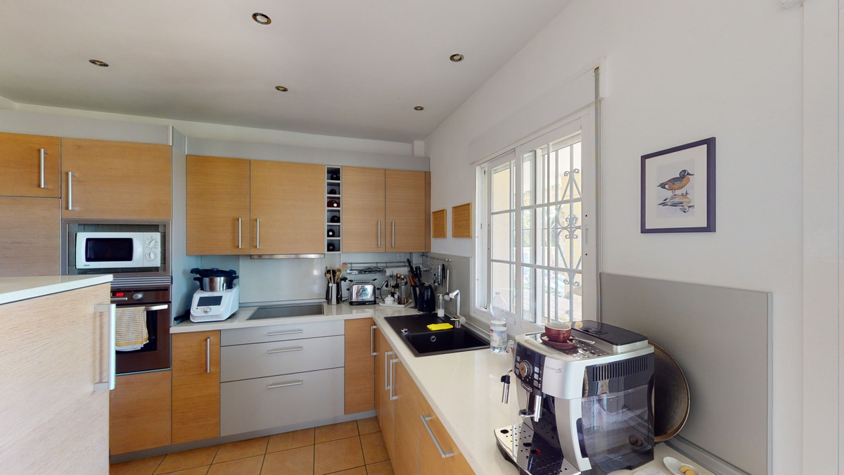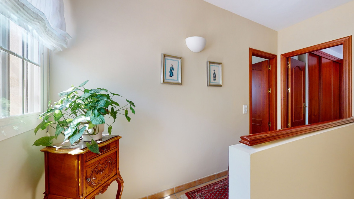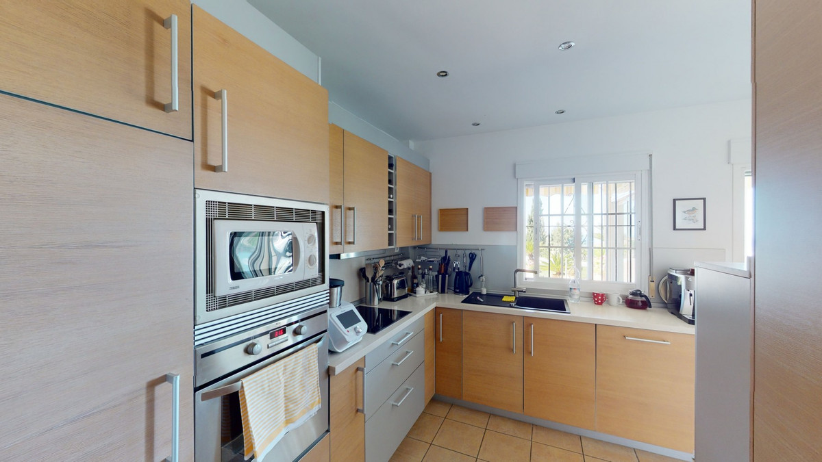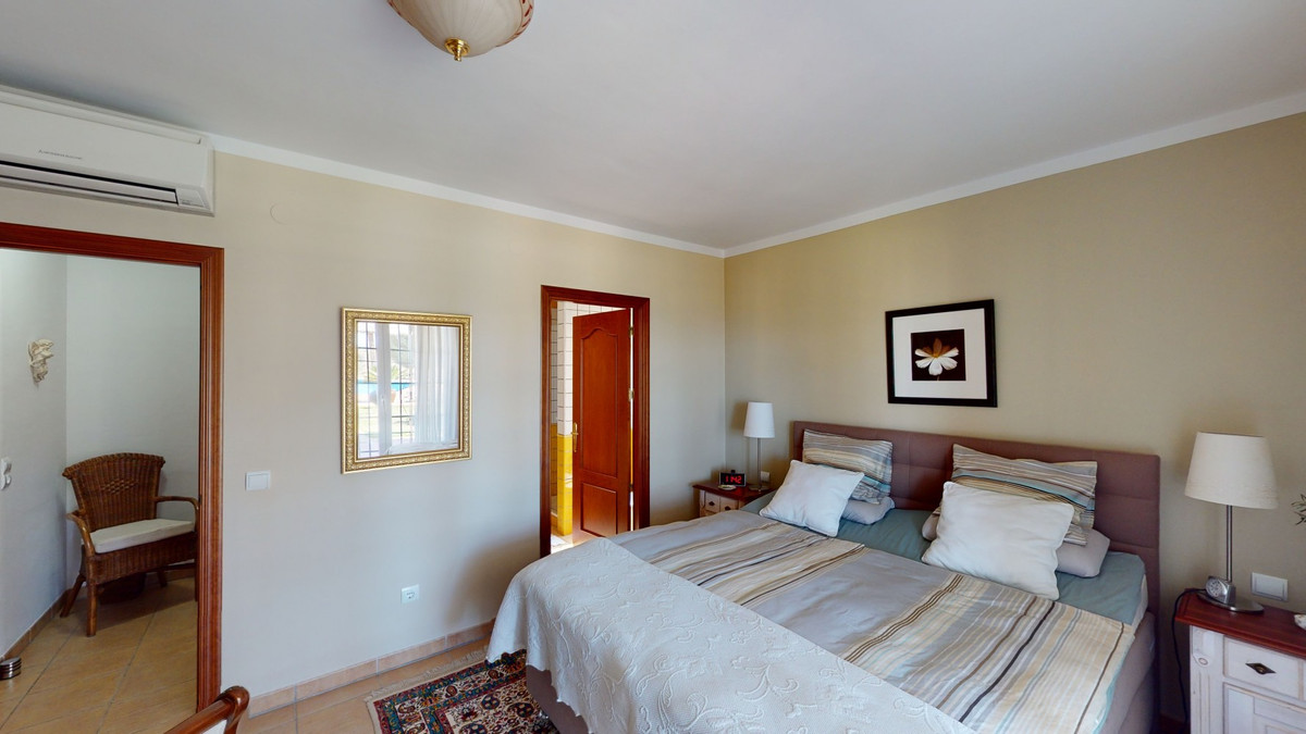 The perfect view paired with the right southwest orientation, which together gives the superlative to absolute happiness. A villa which leaves nothing to be desired, built to a very high standard with an incomparable beautiful garden with spa, sauna and pool, a luxurious outdoor kitchen with integrated dining area. All this and more is offered by this unique villa, located between Algarrobo and Sayalonga. Due to its exposed location, in addition to absolute privacy, you have the romantic view of the setting sun - partly over the Mediterranean Sea and sometimes - depending on the season - over the fabulous mountain landscape of Málaga. Over an asphalted, with pines lined private access road one reaches the imposing entrance area of the property , where a palm island is in the midst of rondel. There are several parking spaces and a garage plus a large carport. On the first floor of the villa is the living room with separate fireplace room, a guest toilet and laundry room, a modern kitchen with access to the very spacious conservatory, which lacks nothing. Further, on the first floor there is a really nice bedroom with a bathroom on suite. On the upper floor of the villa is the master bedroom with a spacious bathroom on-suite , as well as an attached dressing room. The property is equipped with central heating, air conditioning and a fireplace. On the plot are planted a variety of fruit trees, palm trees , tropical plants and pine trees. 15 minutes to the beach and the sea, as well as the golf course and marina of Caleta - and only 40 minutes drive to the airport of Málaga. We are pleased to be able to present this dream property to you soon, either personally or via virtual viewing. Because this world, it is unique - just like our Axarquía. In Andalusia. On the Costa del Sol. Here, on the sunny side of life...