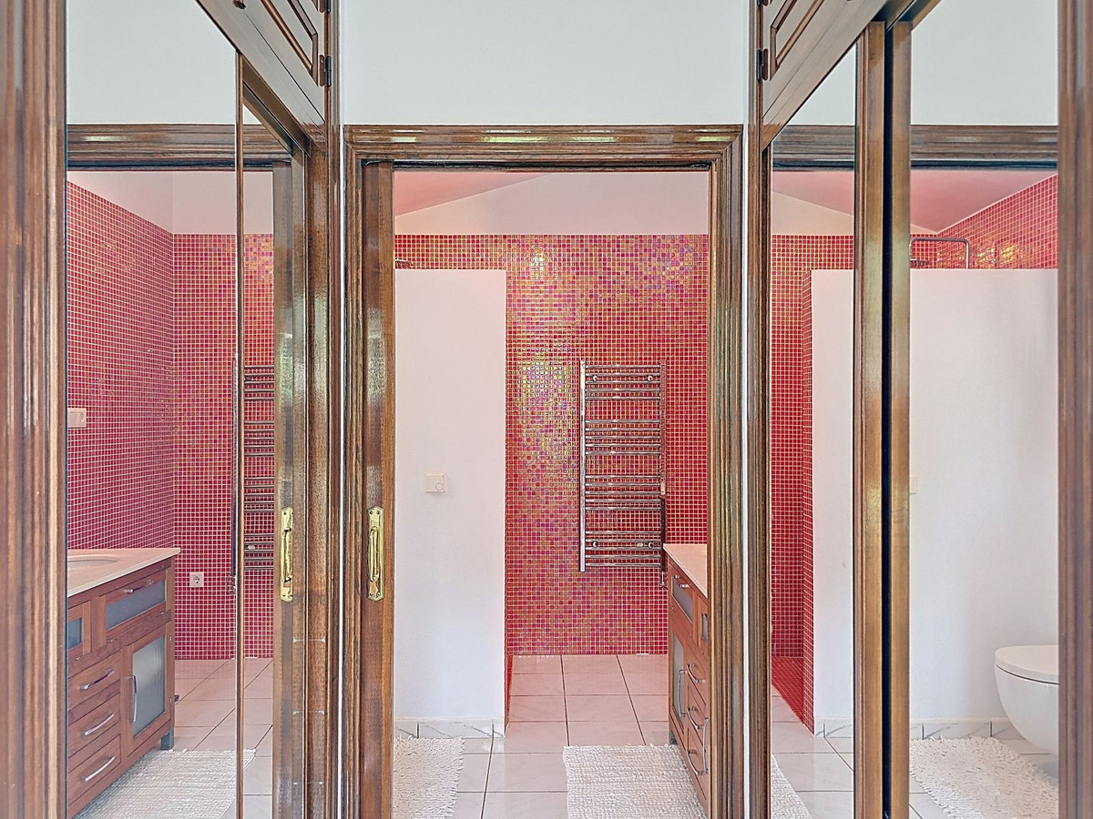 A special highlight is the garage with polyvalent space and its own bathroom, above which is an independent living unit with bedroom and lounge – perfect as a guest suite, studio, or for family members who value privacy.