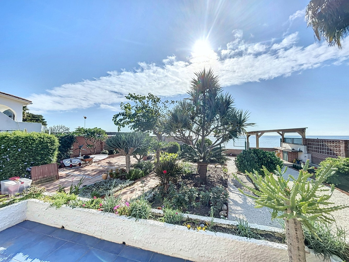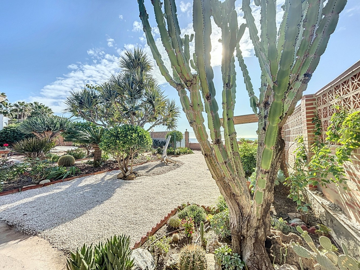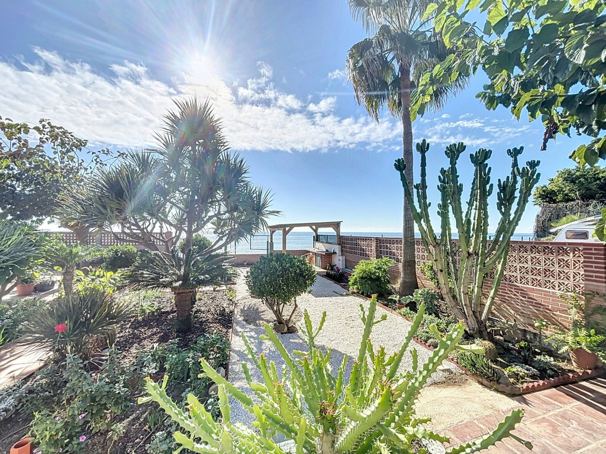 This exclusive villa in Almayate offers a rare opportunity to live directly by the sea. With a living area of 129 m2 on a generous 682 m2 plot, it combines modern comfort with a unique location. Its perfect south-facing orientation ensures sun-filled rooms and a pleasant climate all year round. The property boasts direct access to the beach, where you can enjoy stunning views of the Mediterranean and the tranquility of the coastal surroundings. The villa features energy-efficient solar panels, reducing both environmental impact and energy costs. Inside, there are three spacious bedrooms, two of which include built-in wardrobes for added convenience. A modern bathroom and an additional guest toilet offer functionality and comfort. The fully equipped kitchen is perfect for those who enjoy cooking in a contemporary space, while the large living and dining area with a fireplace creates a warm and inviting ambiance, ideal for relaxing evenings. Outside, the beautifully maintained garden provides privacy and serenity, while the barbecue area is perfect for hosting gatherings with family and friends. Additional storage is available in a separate utility room, and the electric gate gives access to ample parking for multiple vehicles. This villa is the ideal retreat for anyone seeking the perfect blend of beachfront living and modern amenities in a peaceful environment. A true gem in a prime first-line beach location, offering the best of coastal living. We are pleased to be able to present this dream property to you soon, either personally or via virtual viewing. Because this world is unique - just like our Axarquía. In Andalusia. On the Costa del Sol. Here, on the sunny side of life...