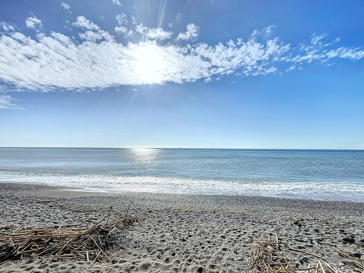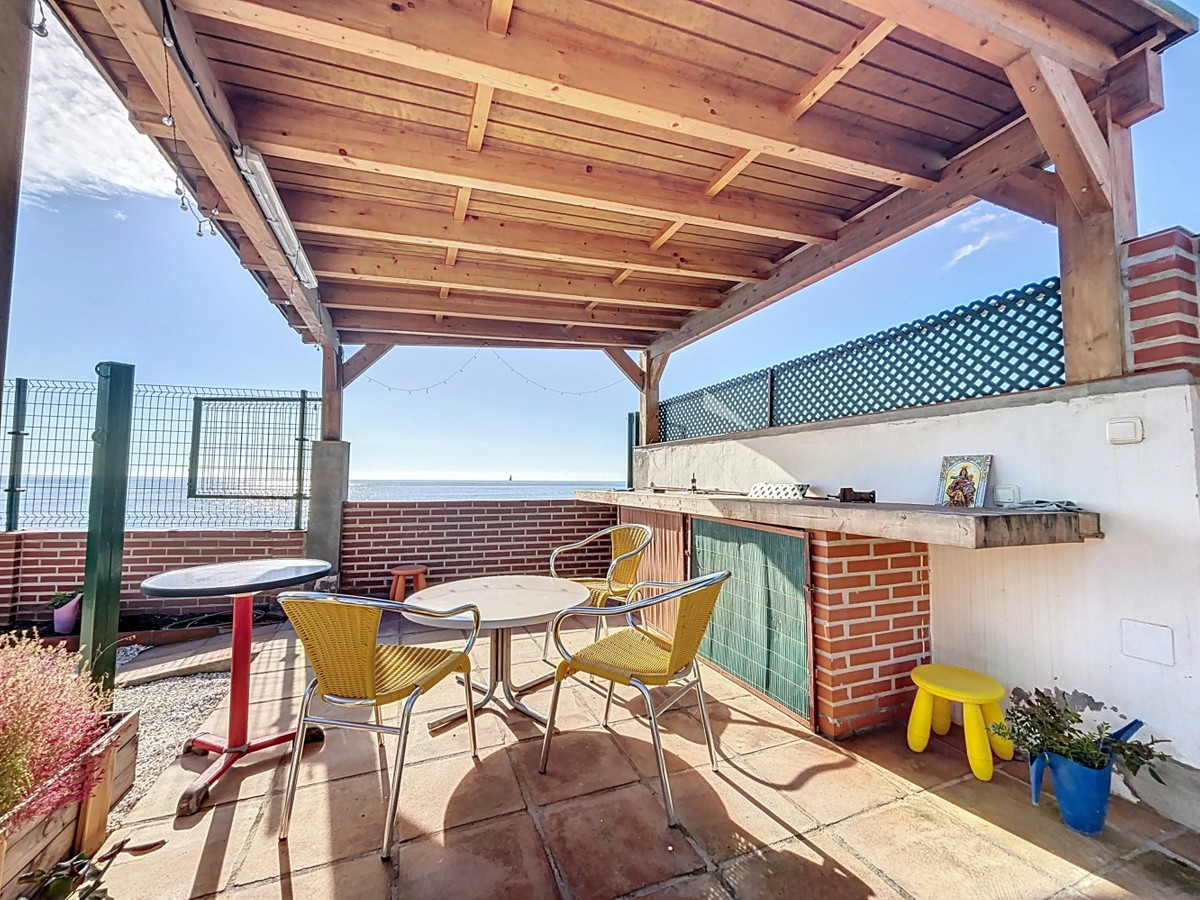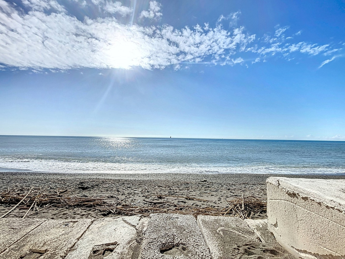 This exclusive villa in Almayate offers a rare opportunity to live directly by the sea. With a living area of 129 m2 on a generous 682 m2 plot, it combines modern comfort with a unique location. Its perfect south-facing orientation ensures sun-filled rooms and a pleasant climate all year round. The property boasts direct access to the beach, where you can enjoy stunning views of the Mediterranean and the tranquility of the coastal surroundings. The villa features energy-efficient solar panels, reducing both environmental impact and energy costs. Inside, there are three spacious bedrooms, two of which include built-in wardrobes for added convenience. A modern bathroom and an additional guest toilet offer functionality and comfort. The fully equipped kitchen is perfect for those who enjoy cooking in a contemporary space, while the large living and dining area with a fireplace creates a warm and inviting ambiance, ideal for relaxing evenings. Outside, the beautifully maintained garden provides privacy and serenity, while the barbecue area is perfect for hosting gatherings with family and friends. Additional storage is available in a separate utility room, and the electric gate gives access to ample parking for multiple vehicles. This villa is the ideal retreat for anyone seeking the perfect blend of beachfront living and modern amenities in a peaceful environment. A true gem in a prime first-line beach location, offering the best of coastal living. We are pleased to be able to present this dream property to you soon, either personally or via virtual viewing. Because this world is unique - just like our Axarquía. In Andalusia. On the Costa del Sol. Here, on the sunny side of life...