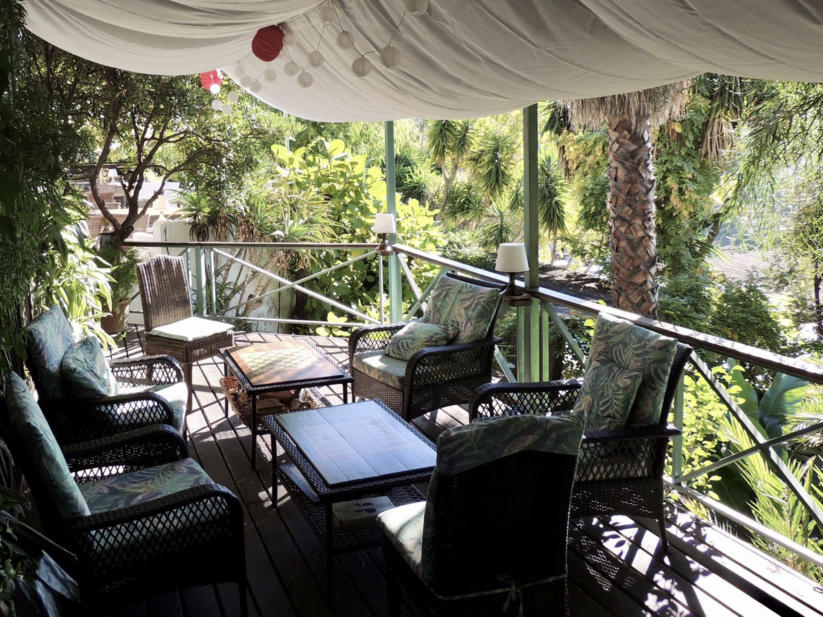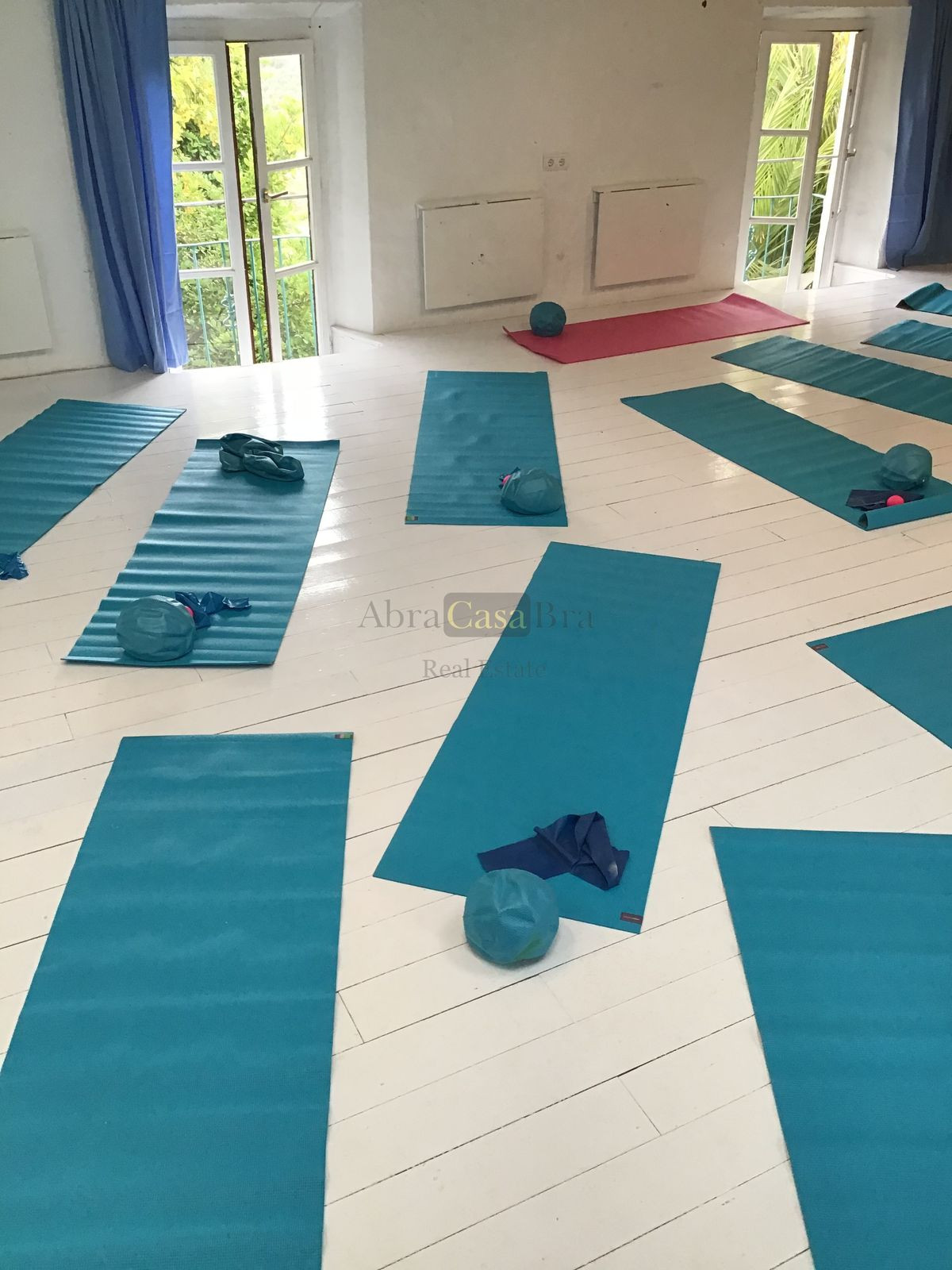On the beautifully landscaped plot is a large studio currently used for group activities such as yoga and painting.