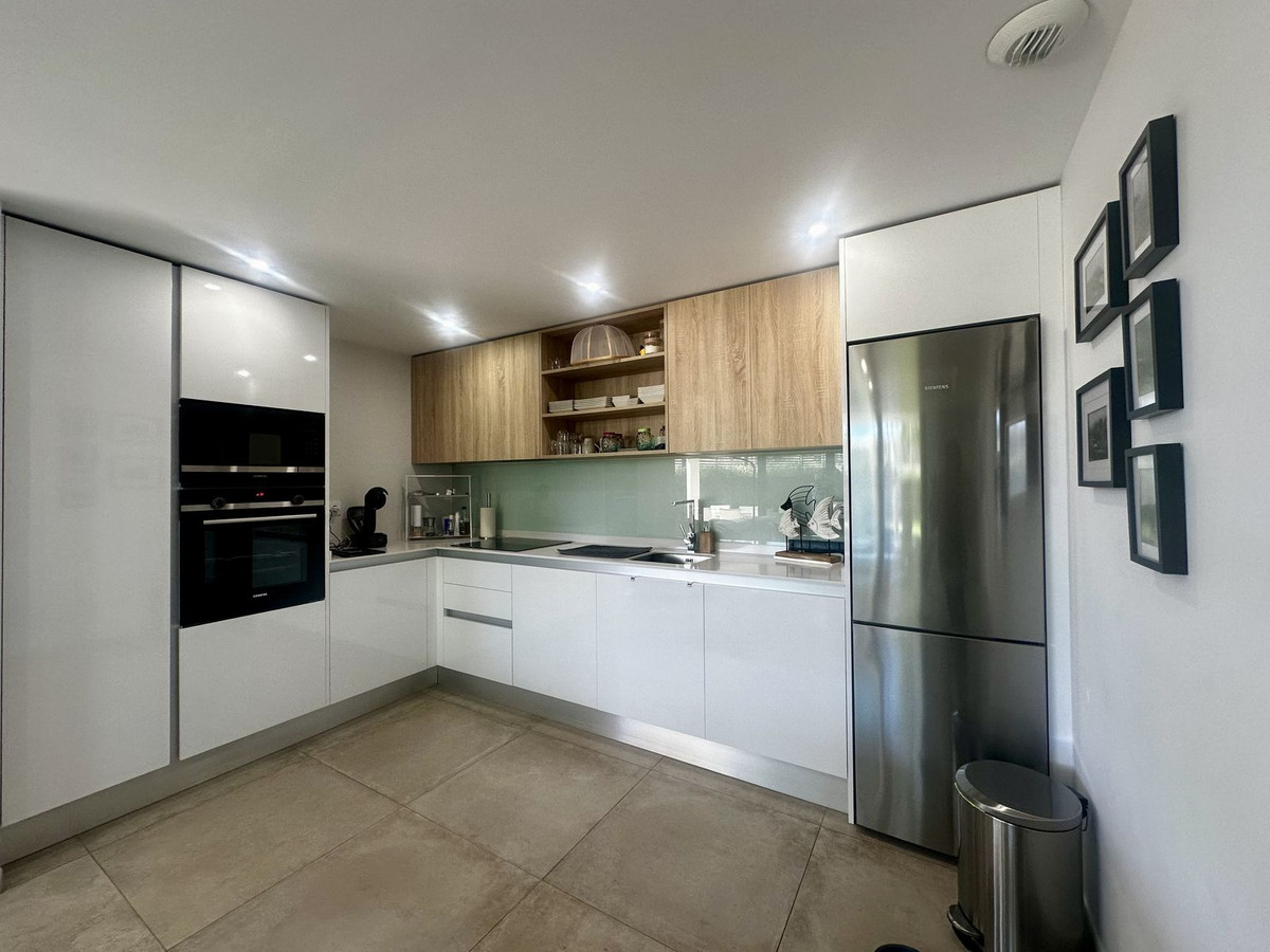 The apartment offers 100 m² built, a 50 m² covered terrace, and a 120 m² private garden for exclusive use. It features a bright open-plan kitchen integrated with the living room and direct access to the spacious terrace, ideal for relaxing or enjoying outdoor gatherings.