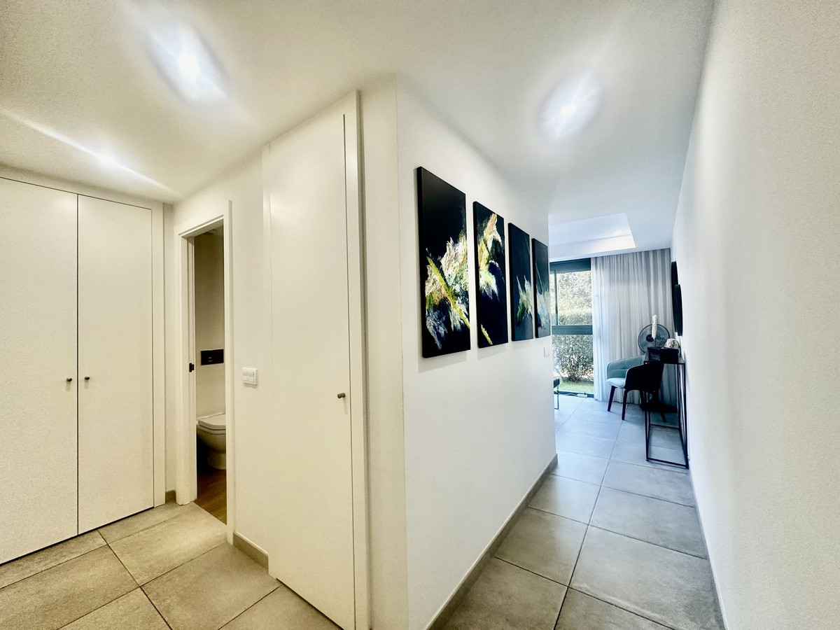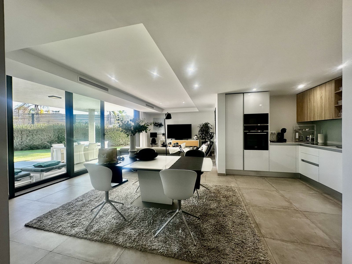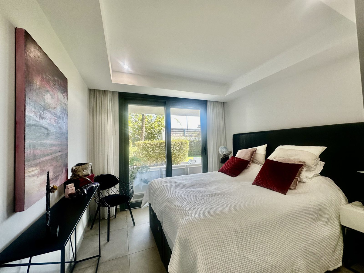 Modern and elegant ground floor apartment with 2 bedrooms and 2 bathrooms, located in the sought-after area of Cancelada (Estepona), just 15 minutes from Marbella, 10 minutes from Puerto Banús, and 5 minutes from the exclusive Anantara Villa Padierna Hotel and Flamingos Golf courses.