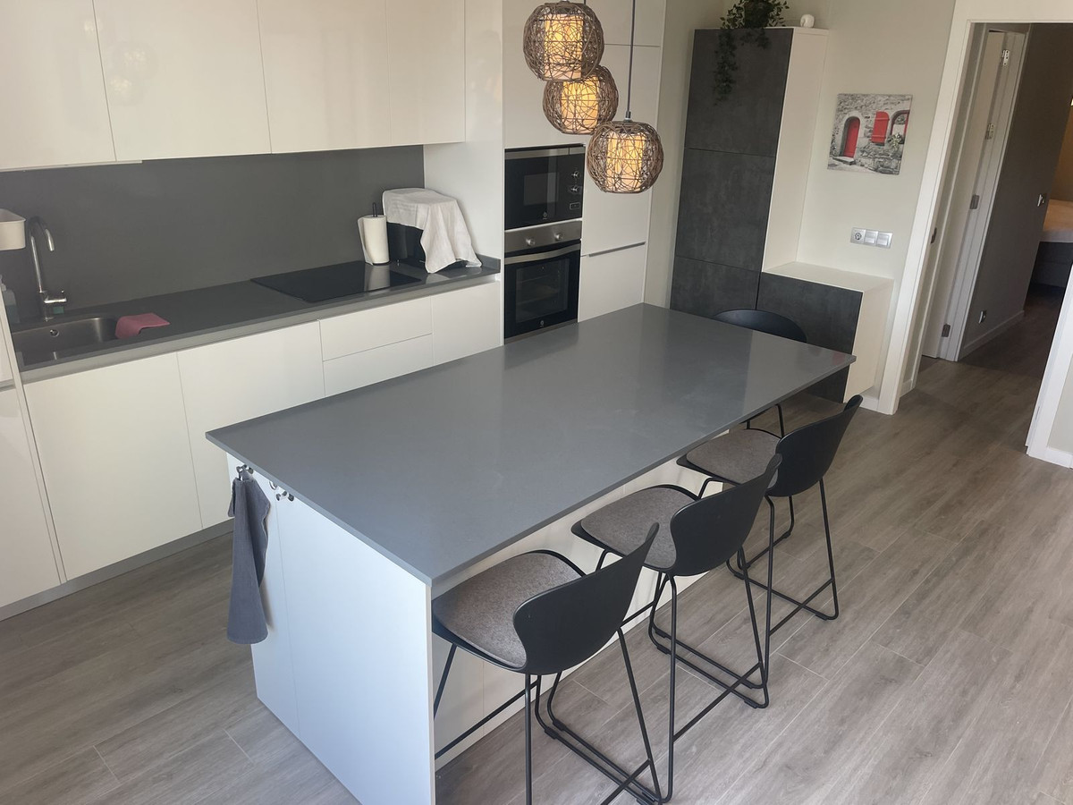 The apartment includes two spacious bedrooms, sleek modern finishes, and a seamless indoor-outdoor flow that captures the Mediterranean lifestyle.