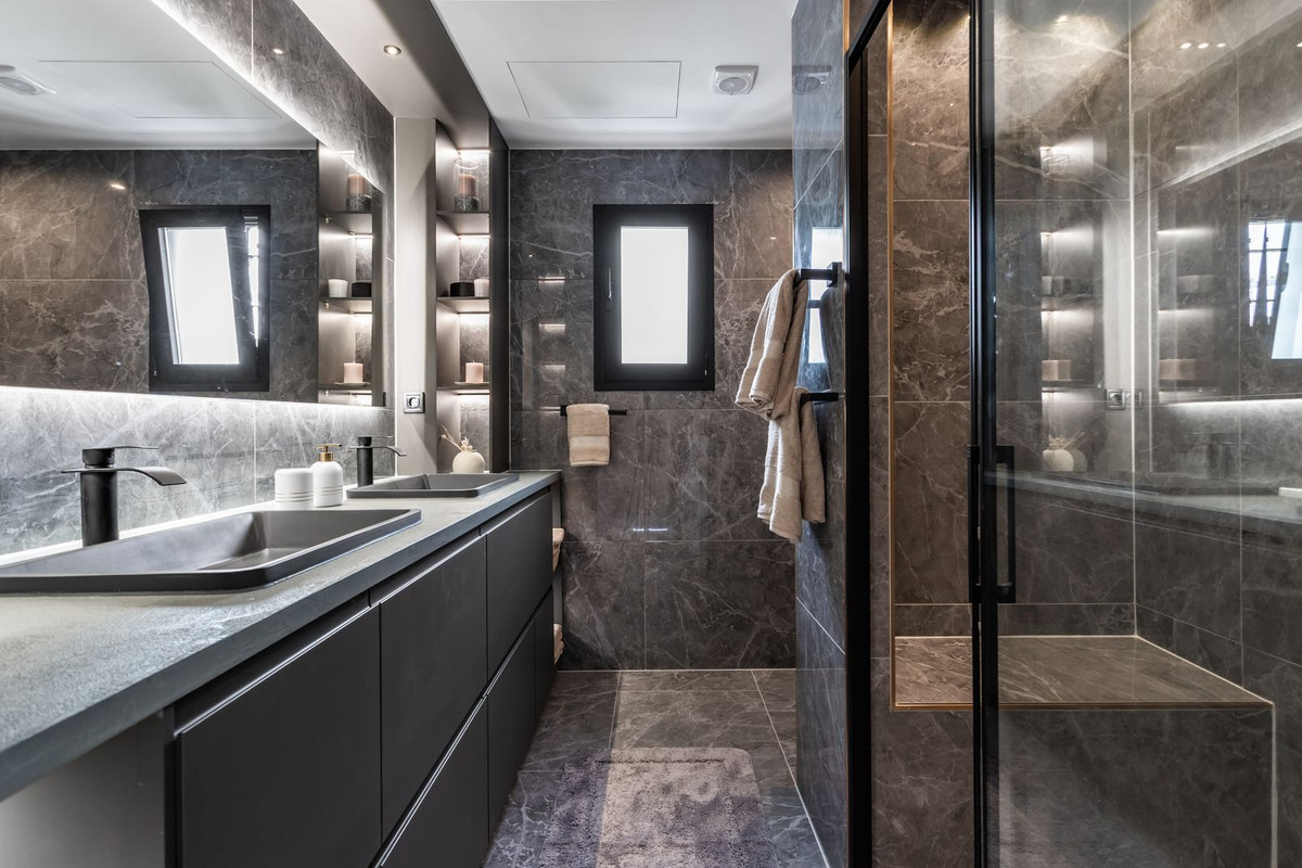 The ground floor is designed for socializing and enjoyment – it features expansive living areas with a stylish kitchen and bar, as well as an elegant wine lounge, ideal for wine enthusiasts.