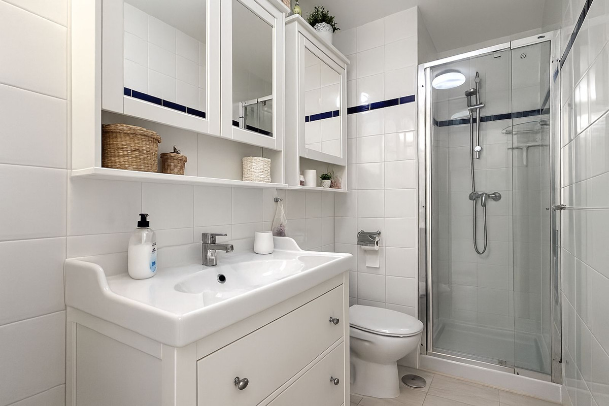 The main floor consists of an elegant entrance hall that leads to a charming kitchen and a living/dining room which connects directly to a terrace and balcony, from where one can already appreciate the magnificent view of the Fuengirola coast and the Sierra Nevada mountains.