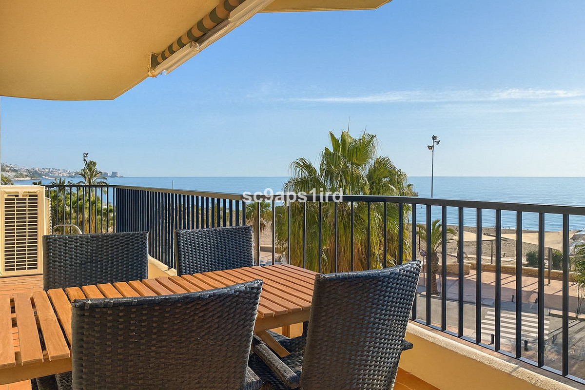 Cet appartement idéalement situé au deuxième étage bénéficie d'une position privilégiée en première ligne sur le Paseo Marítimo à Fuengirola, juste en face de la plage et à quelques pas de la gare de Carvajal.