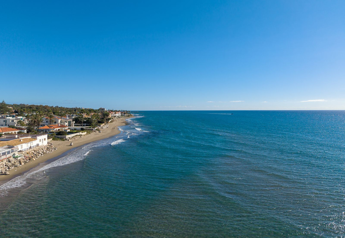 Un escalier extérieur mène à une spacieuse terrasse sur le toit où vous pourrez profiter d'une vue imprenable sur la mer et de couchers de soleil inoubliables, avec un panorama s'étendant jusqu'à la côte africaine et Gibraltar.