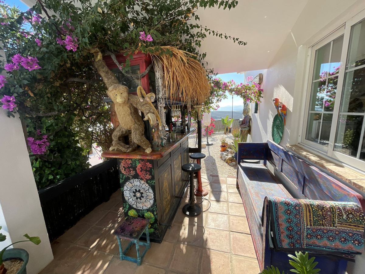 En entrant dans le jardin, on est immédiatement séduit par l'harmonie des terrasses, des jardinières, des espaces détente et de la magnifique piscine ! Un lieu idéal pour profiter pleinement de la vie espagnole en plein air. L'ensemble a été aménagé avec beaucoup de goût, et nous tenons à souligner tout particulièrement le superbe carrelage de la piscine. La vue depuis le jardin et la piscine est spectaculaire et ne manquera pas de vous émerveiller.