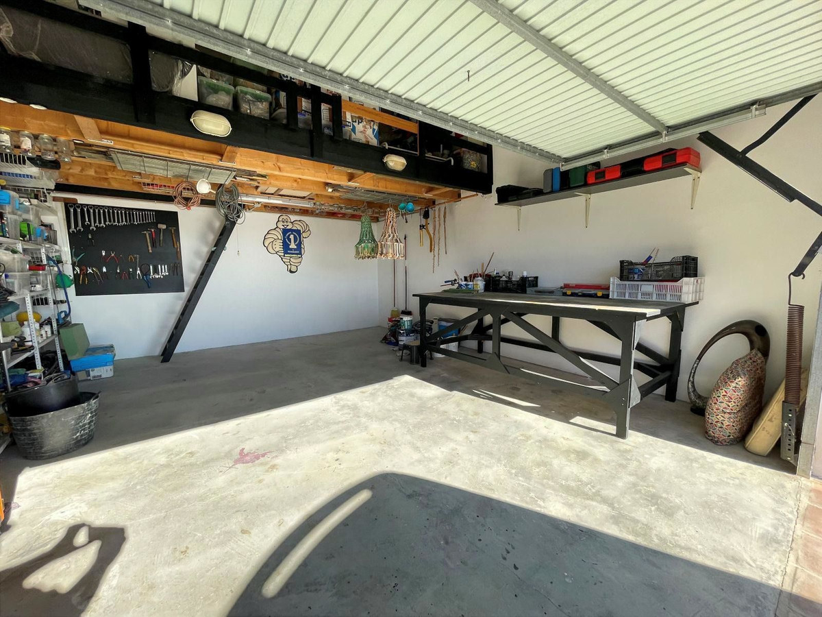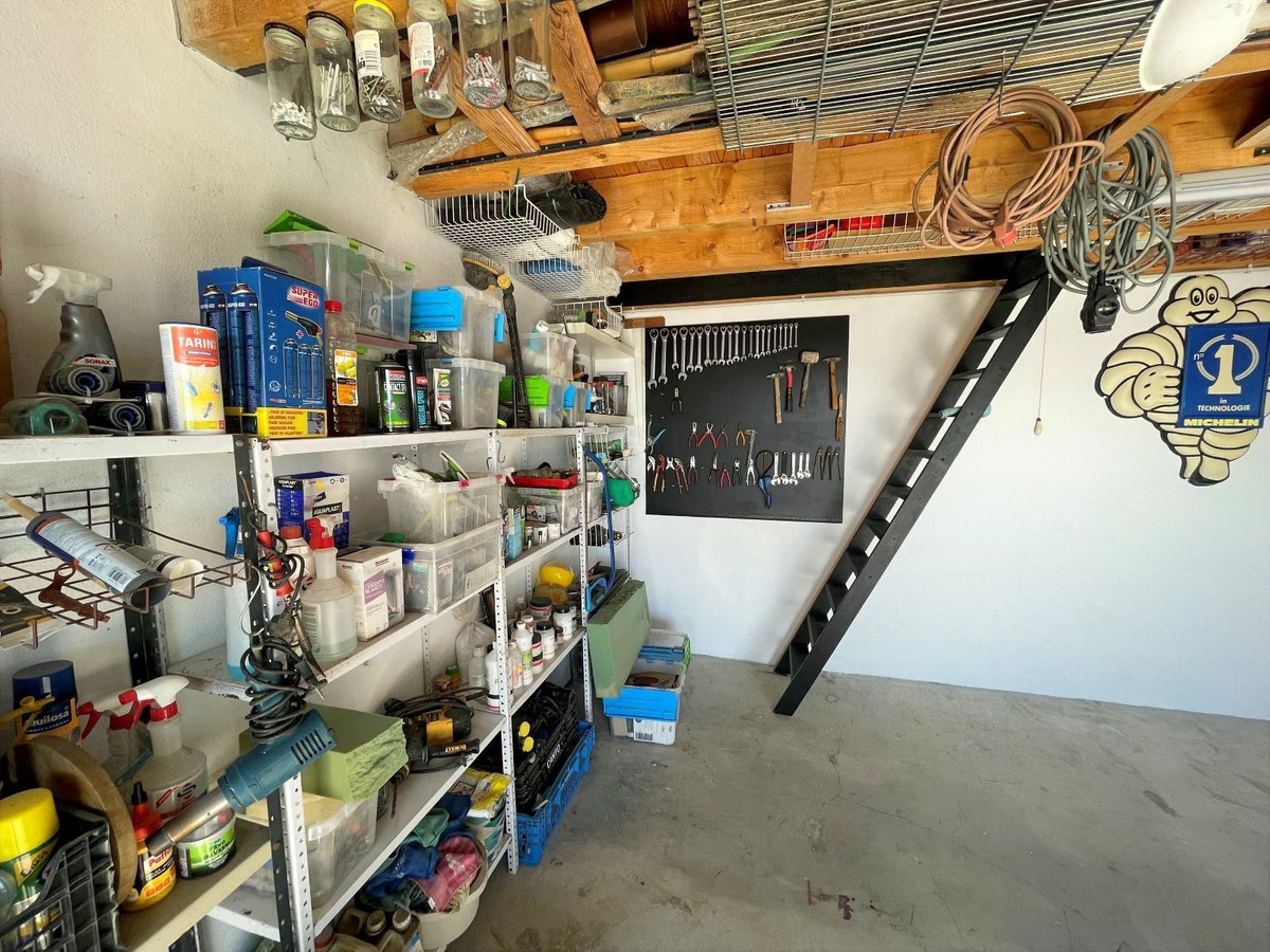 Derrière la Casita, à un niveau inférieur, se trouve un garage spacieux (40 m²) offrant de nombreuses possibilités grâce à sa taille généreuse et son emplacement agréable ! Un grand grenier a été aménagé dans le garage pour le rangement ou d’autres usages.