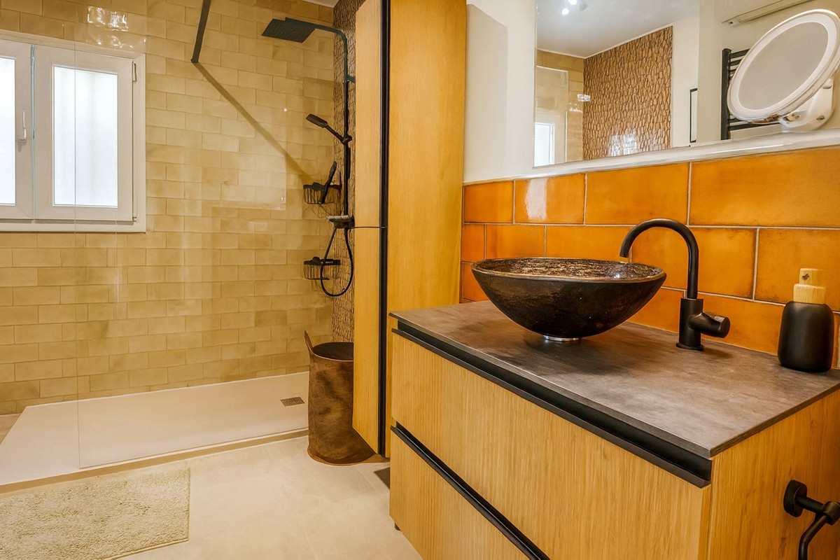 L'annexe indépendante d'une chambre avec sa propre cuisine, salle de douche et dressing, offrant un accès direct à la piscine, est idéale pour accueillir des invités ou générer un revenu supplémentaire.