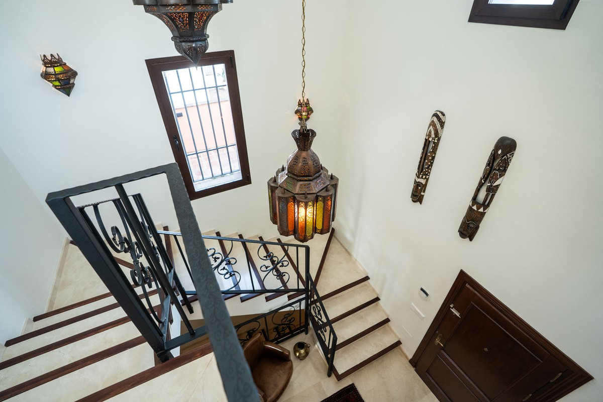 This wonderful villa on 3 levels, built in a timeless traditional style with the highest construction qualities, is located in one of the most exclusive and peaceful streets of prestigious Marbesa/Marbella, just a short walk from the beach and just a short walk from 5 beach restaurants, 2 super markets @ the 5 star hotel Don Carlos. Set on a generous plot, it offers maximum privacy, security and comfort.
