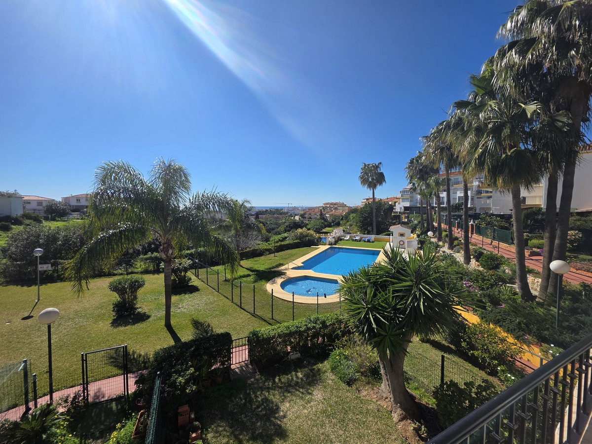 Step onto the private 8 m² terrace and enjoy relaxing views of the Mediterranean Sea, communal gardens, and swimming pool, making it the perfect space for outdoor dining or enjoying the Costa del Sol climate all year round.