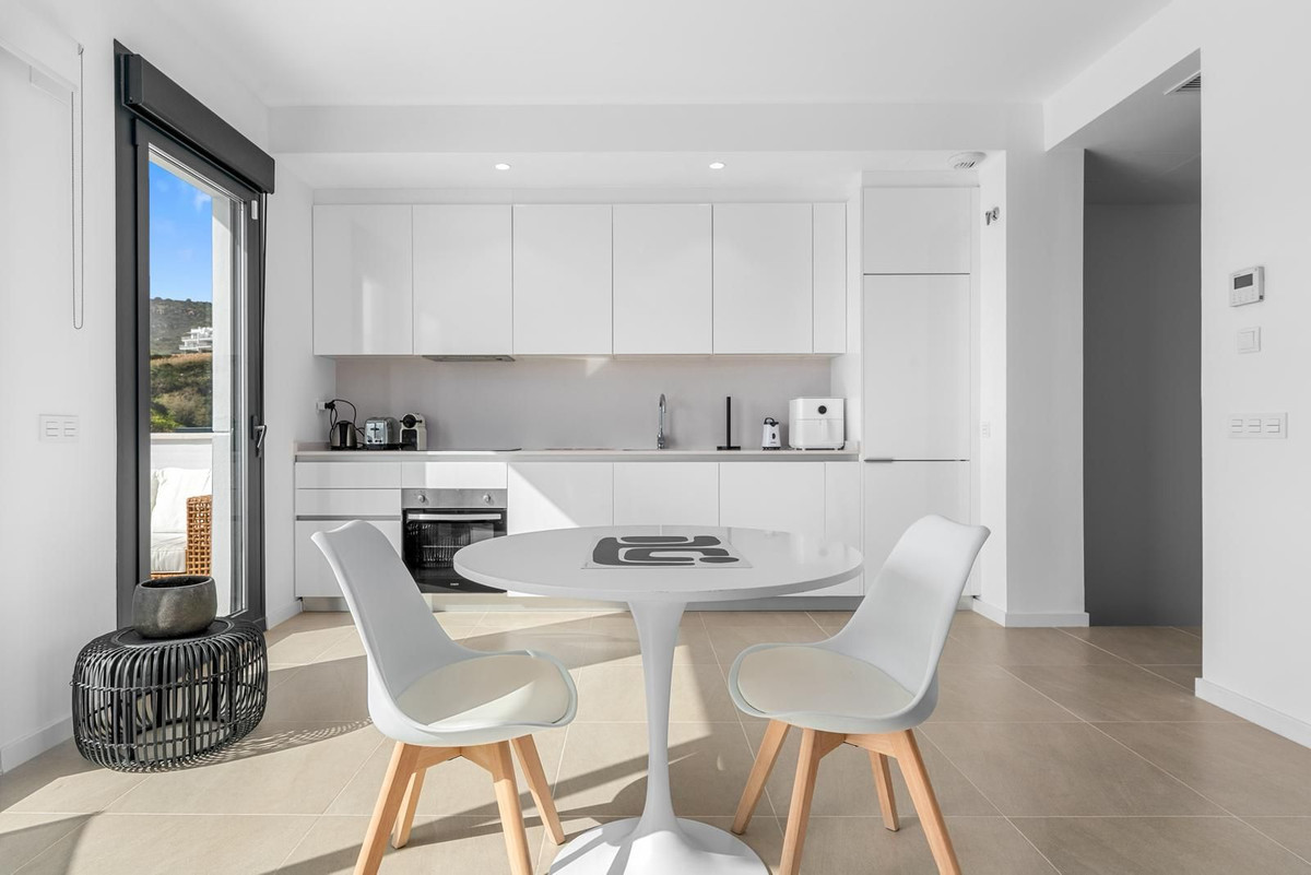 Magnificent apartment , located within the highly sought-after development of Bahía de las Rocas – Manilva. The property offers two bedrooms and two bathrooms, combining comfort, elegance, and functionality. From the moment you enter, a welcoming entrance hall leads to a spacious, light-filled living area featuring an open-plan kitchen, dining area, and a comfortable lounge. This space opens onto a large terrace, a true extension of the interior, offering spectacular views of the sea, Gibraltar, the coast of Morocco, and the surrounding hills. Thanks to its ideal south to south-west orientation, the apartment enjoys optimal sunlight throughout the day. The property can be accessed directly from the underground parking, with a private entrance leading straight into the apartment. A laundry room completes this property. The project, completed in summer 2025, is a contemporary residential complex consisting of 46 apartments, designed to offer exceptional panoramic views of the Mediterranean, just a few meters from the beach. The complex stands out for its high-quality materials, generous living spaces, and exclusive amenities, including an infinity pool, gym, and spa. Ideally located close to golf courses and marinas, it is just 15 minutes from Gibraltar Airport and a short distance from Estepona, La Duquesa Marina, and the prestigious Sotogrande Marina. Puerto Banús and Marbella are less than 30 minutes away. An exceptional property, ideal as a primary or secondary residence or as a high-quality investment, set in a natural and exclusive environment, perfect for enjoying the Costa del Sol climate and the Mediterranean Sea. A must-see!