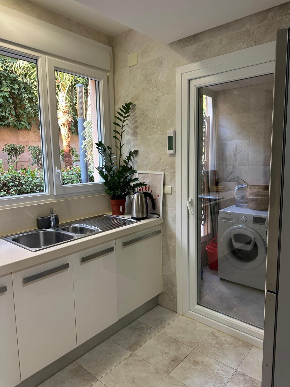 The house is located on the ground floor of a modern building with elevator. It offers an interior surface of 130 m2 and a terrace of 40 m2, ideal to enjoy the sunny climate of the Costa del Sol. The apartment is fully furnished, with a contemporary design and high quality finishes.
