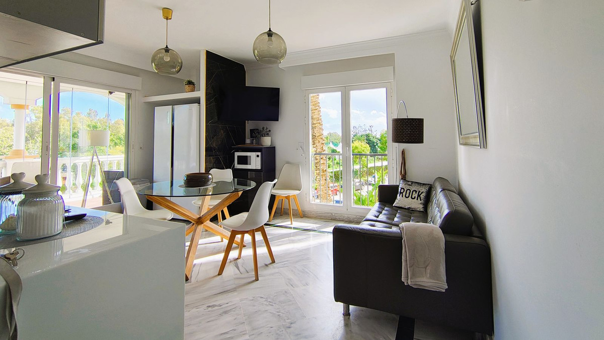 We are pleased to present this exceptional corner apartment, perfectly situated in one of the most strategic and sought-after locations in Nueva Andalucía. Located on the first floor with a bright Southeast orientation, this property stands out for its natural light and its privileged position within a prestigious gated community.