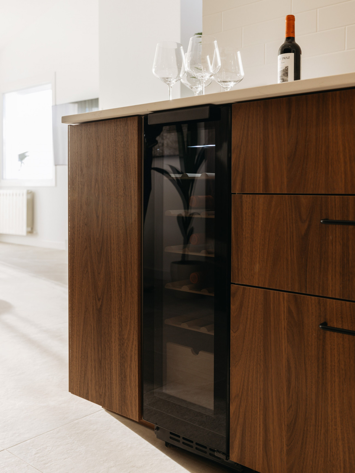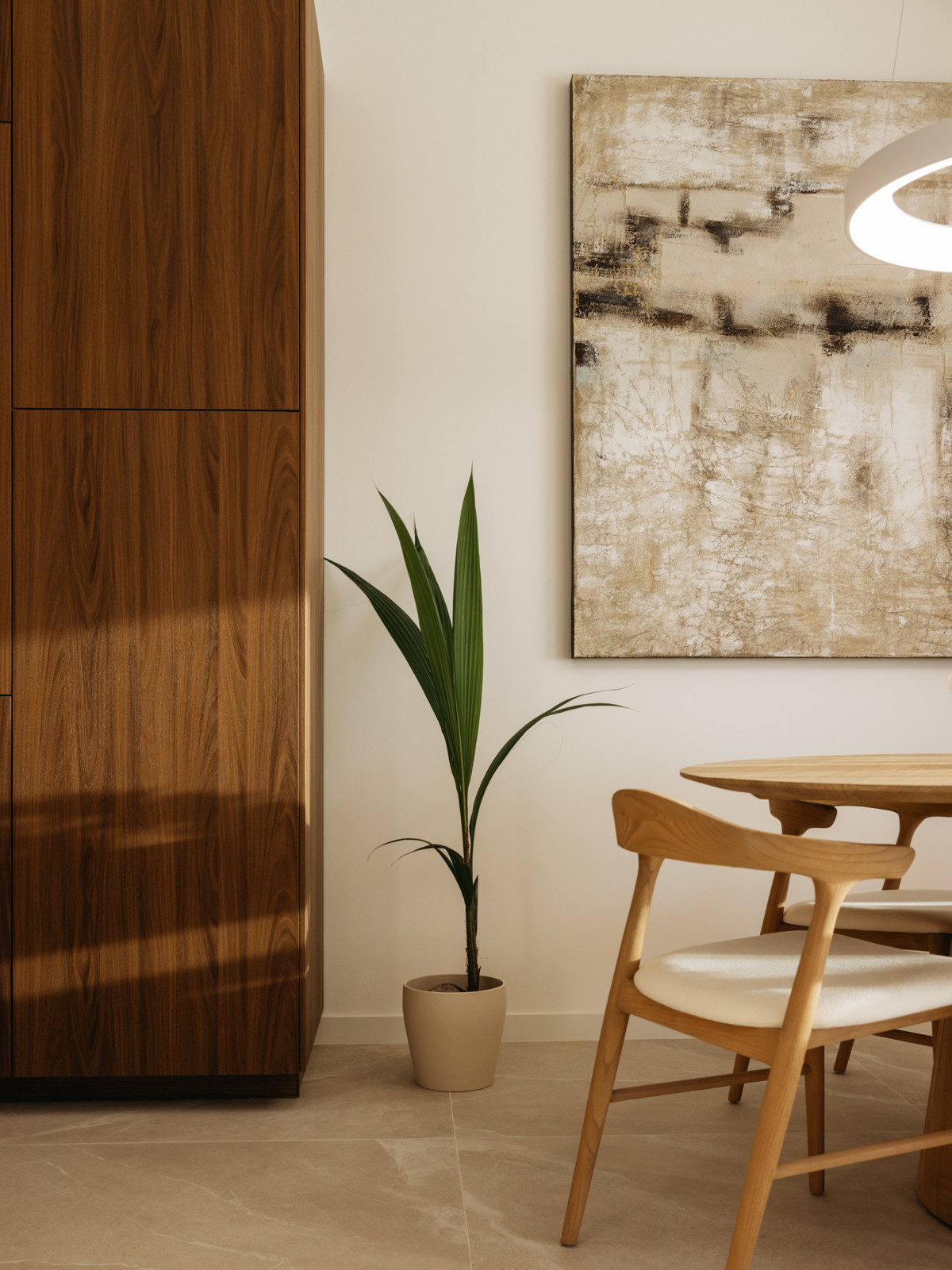Just outside the kitchen window, a charming lemon tree adds an authentic Mediterranean touch, blending beautifully with the home’s clean Nordic design. From this level, you have direct access to a private terrace, ideal for alfresco dining, relaxing, and enjoying spectacular sunsets over the golf valley.