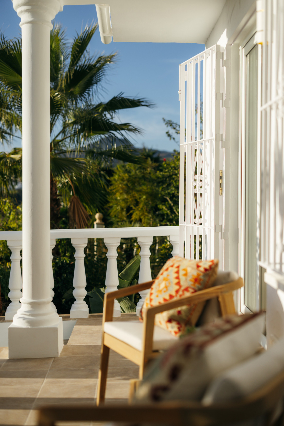 The master bedroom opens directly onto a private outdoor chill-out area with sun loungers, lush greenery, and a tranquil ambiance—your own secluded retreat to fully embrace the Costa del Sol lifestyle.