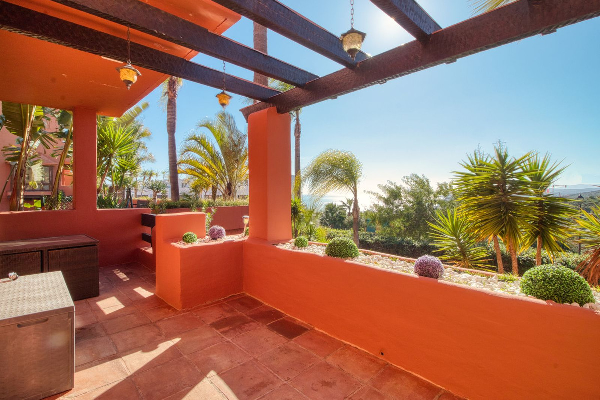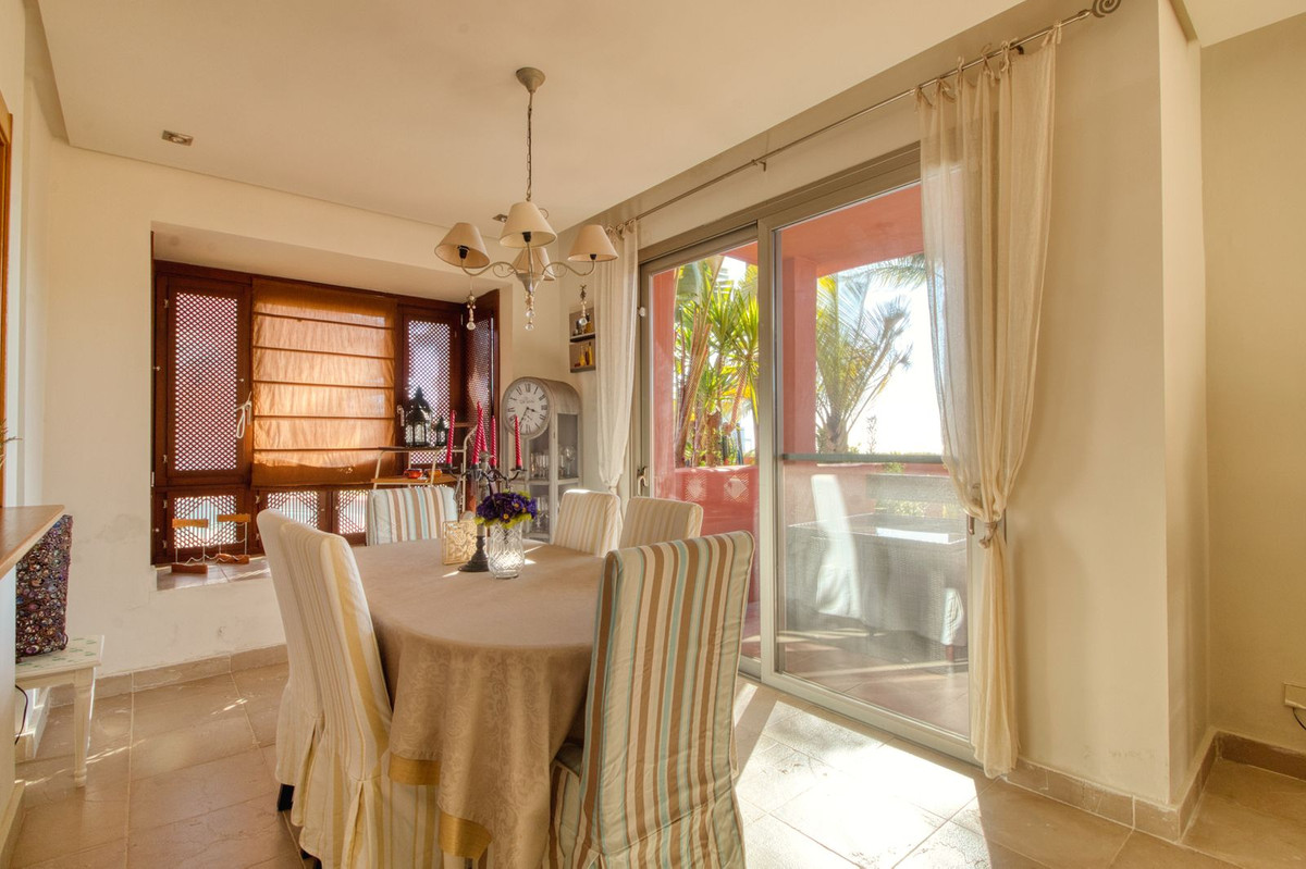 The ground floor features a large and bright living and dining area, a fully equipped kitchen, and direct access to a spacious terrace, perfect for outdoor dining and relaxation. On the first floor, the property offers three bedrooms and two bathrooms, one of them en-suite. The master bedroom enjoys a private balcony with stunning sea views. Two of the three bedrooms benefit from beautiful sea views towards Gibraltar and the African coastline.