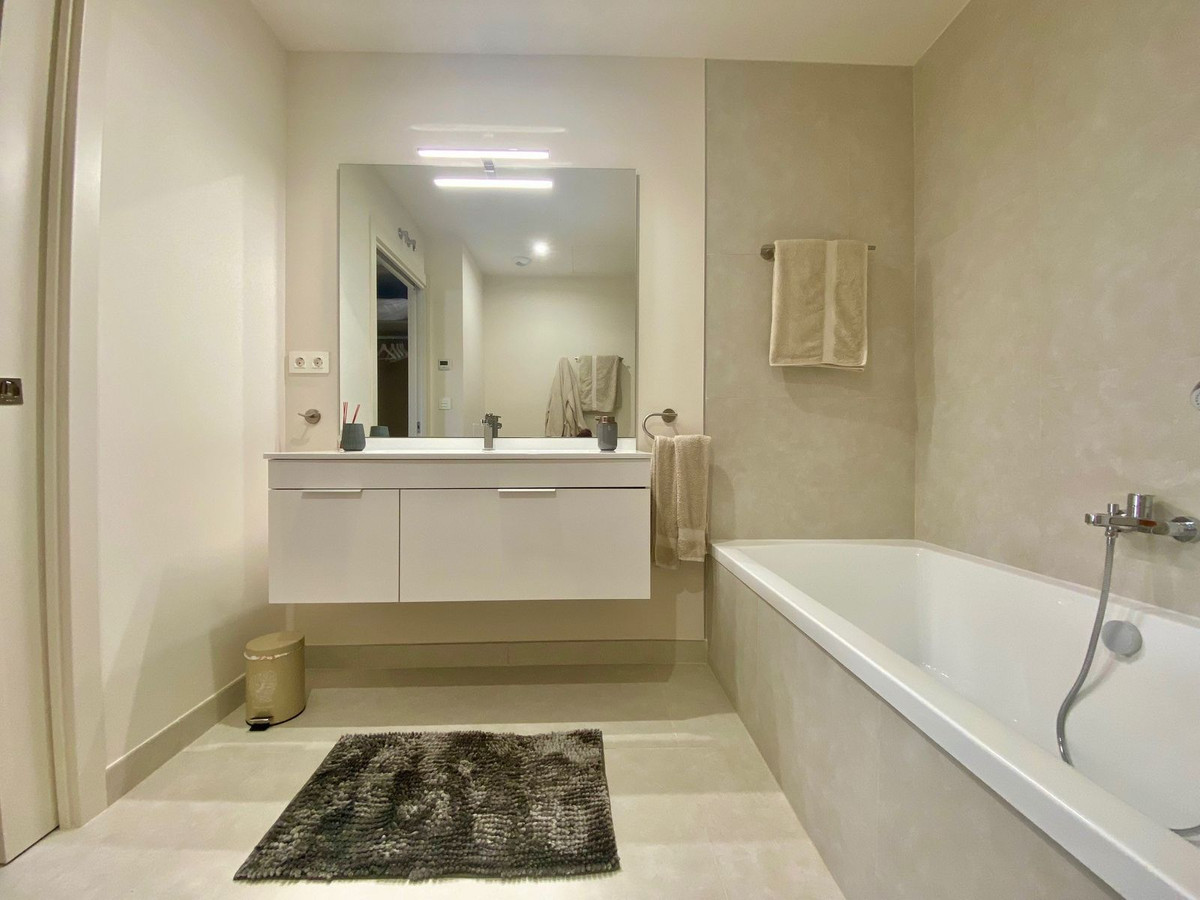Built area of 117m2 the property features sleek interior living space that flows seamlessly onto an impressive 31 m² southwest-facing terrace with lateral sea views and barbecue— the perfect setting for sunset dining, entertaining guests, or simply unwinding in the Costa del Sol sunshine.The open-concept kitchen is fully equipped with high-efficiency appliances (Bosch) and an advanced aerothermia climate system, blending sustainability with style. It connects harmoniously to a bright and airy living-dining area, both designed to maximise natural light and indoor-outdoor living. The master suite enjoys direct terrace access and a spa-inspired bathroom with walk-in shower and bathtub, while the second bedroom features fitted wardrobes and its own private terrace. UF heating in both bathrooms adds an extra touch of everyday luxury.