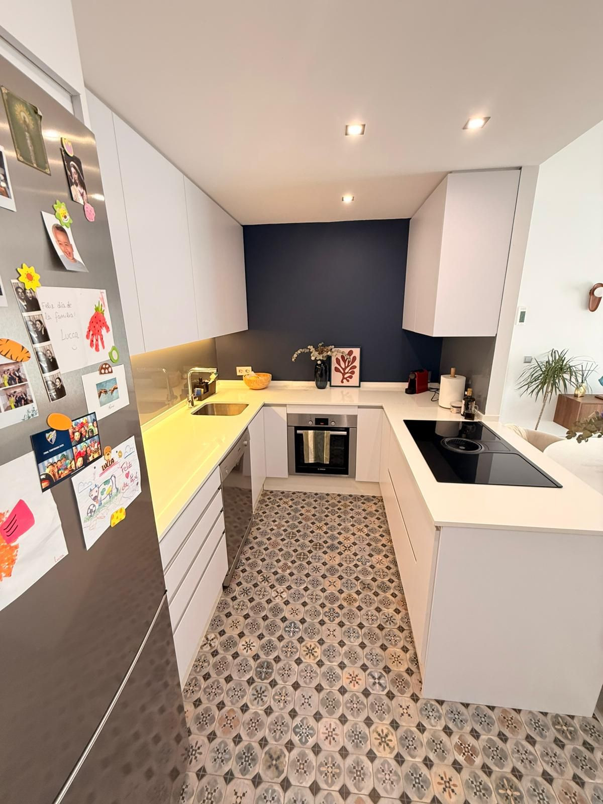 Modern open-plan kitchen, fully furnished and equipped with appliances