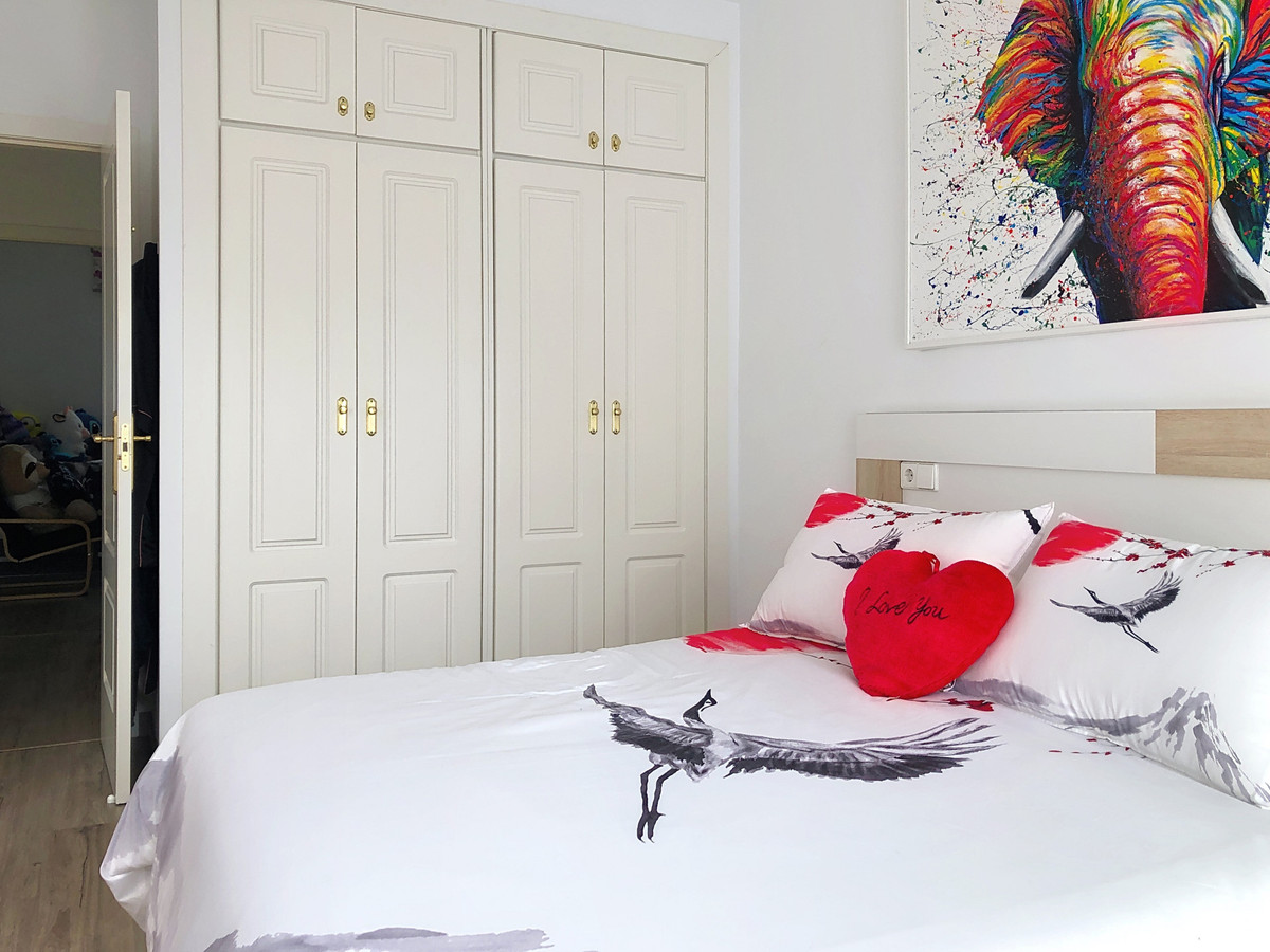 Upstairs, the home boasts three well-appointed bedrooms, each with built-in wardrobes for optimal storage. The spacious master bedroom benefits from two private terraces, creating additional areas to enjoy the fresh air and sunshine. A large family bathroom serves this floor, combining comfort and functionality.