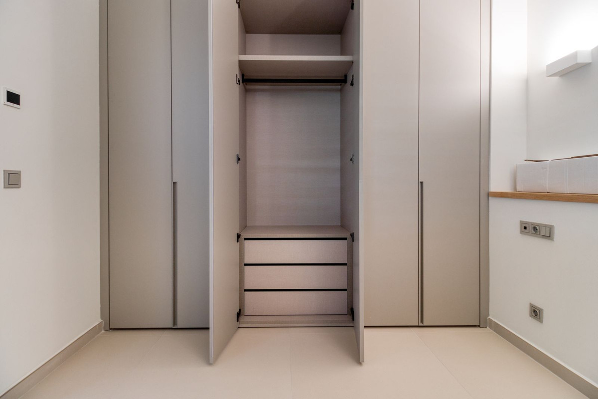 A distinctive feature is the master bedroom’s sliding wall system, which opens seamlessly into the living room — a sophisticated and flexible design element that allows you to create an open-plan loft ambiance or complete privacy as desired.
