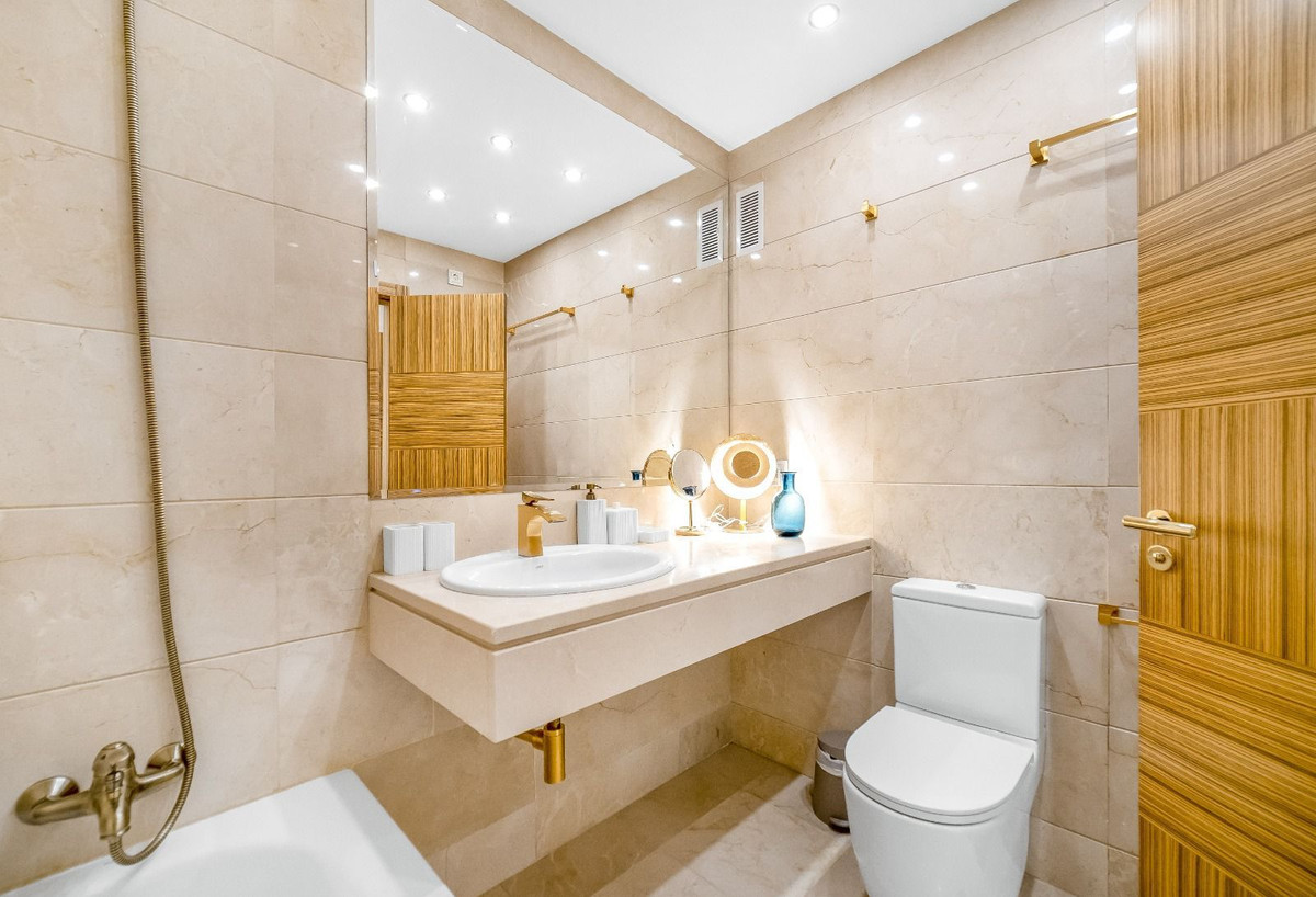 Additional features include marble flooring throughout, air conditioning, quality finishes, and stylish furnishings. The apartment is move-in ready and offers excellent rental potential due to its prime location in one of the most sought-after areas on the Costa del Sol.
