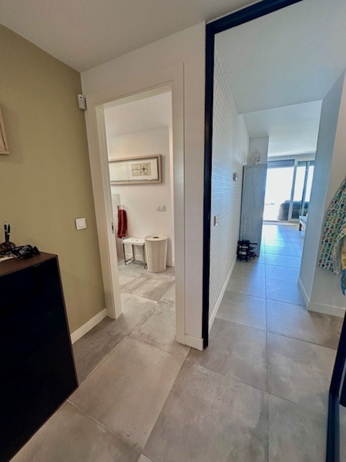 The apartment is situated on the first floor and comprises approximately 70m² of living space plus a 25m² terrace. Facing south, the terrace offers stunning panoramic views of the Mediterranean, as well as excellent privacy and abundant natural light throughout the day.