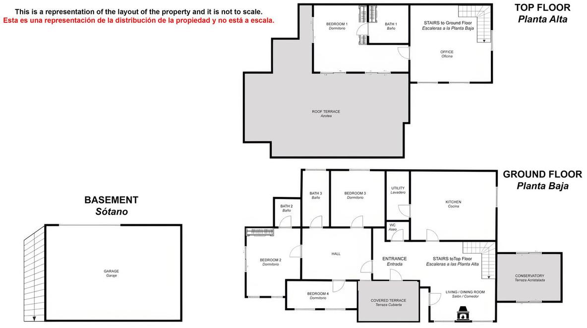 The ground floor of the villa is finished in a rustic style and benefits from a generous living room with fireplace, fully fitted kitchen with utility room, 3 double bedrooms (all with fitted wardrobes), 2 bathrooms, and a guest WC.