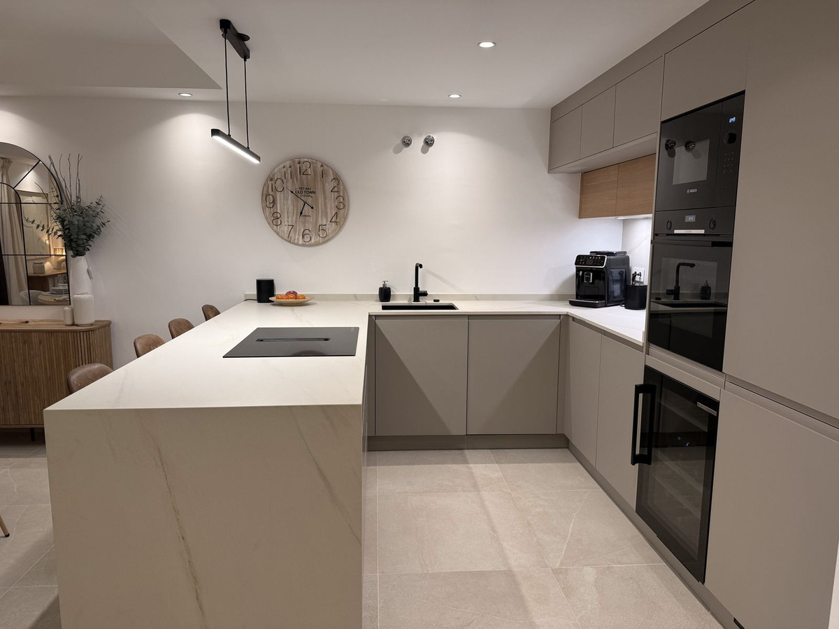 From the moment you enter, the quality of the transformation is evident. The home has been fully rewired to current regulations with a brand-new fuse board, offering complete peace of mind alongside stylish aesthetics. Throughout the property, elegant porcelain flooring flows seamlessly from interior spaces to exterior terraces, creating a harmonious connection between the home and its Mediterranean surroundings. The same premium material has been carried through into the walk-in showers, reinforcing the sense of refined, hotel-inspired design.