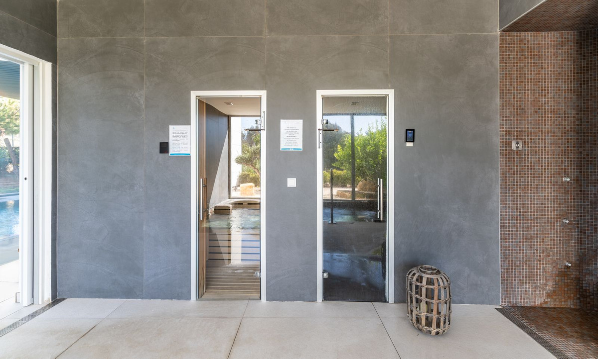 Residents benefit from 24-hour security and concierge services, ensuring privacy and peace of mind. The development features outstanding amenities, including an outdoor infinity pool with panoramic views of the Mediterranean Sea and Gibraltar, an indoor heated swimming pool, spa facilities with sauna and steam room, a fully equipped gymnasium, padel court, and meticulously landscaped gardens that harmoniously integrate with the natural beachfront surroundings.
