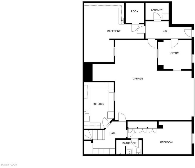 A marble staircase leads to the lower level. Here you will find a guest apartment with an ensuite bathroom and its own spacious kitchen. Next to the guest quarters, passing through the massive garage (55 m²!), is a fourth bedroom, that can also be used as an office. Additionally, this level houses the technical room (with the pool pump) and a storage/workshop area of 30 m². Given the space and the existing plumbing, this floor offers ample possibilities to create 2 or 3 extra guest rooms—ideal for starting a B&B.