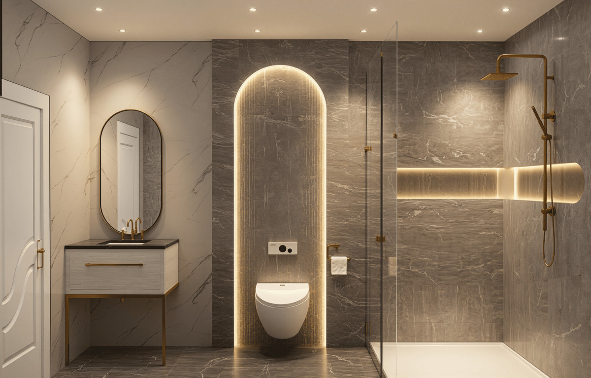 Designer porcelain tiles and consistent finishes