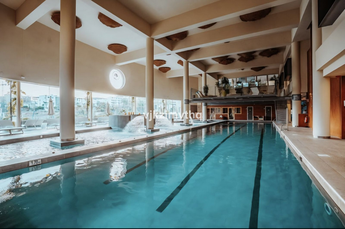 A key feature is the outdoor space, designed for both relaxation and entertaining. The terrace includes a private jacuzzi and direct access to the communal pool, giving the property a unique resort-style feel rarely available in penthouses.