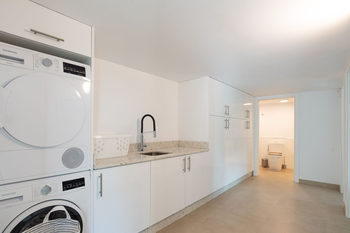 The top floor boasts a huge living area with an open fully equipped kitchen. Exit to large terrace with fantastic sea view.