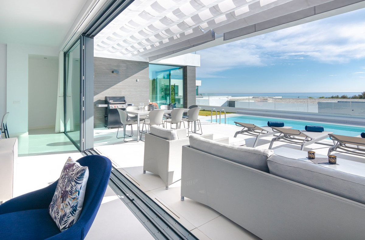 Contemporary 4-bedroom detached villa located in the prestigious gated community of Cabo Royale, Calahonda (Mijas Costa), east of Marbella. Built in 2021, the property enjoys a south-facing orientation, providing excellent natural light, sea views, and a high level of privacy. The villa is within walking distance of Cabopino Marina and approximately 700 metres from the beach, with golf courses and local amenities nearby.