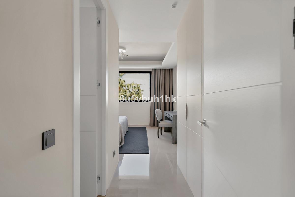 Altos de Puente Romano is well maintained, private, quiet and it has the maximum security 24 hours. Only minutes walk to the Golden Mile beach and to the best restaurants of Puente Romano. This area is very close to the center of Marbella and Puerto Banus.This villa has the most innovative technology. You can control lighting, music, air conditioning and security via wifi. This villa has 7 bedrooms with bathroom en-suite, a gym, music room and a tv-room in the basement, a spacious living room with large windows equipped with electric curtains. The villa bathes in natural light. High quality kitchen with custom made Terrazzo surfaces, appliances of last generation and taps by famous Swedish brand Tapwell.This villa has two heated pools, heating system also in the basement and a Tesla charger.There is a beautiful swimming pool in the garden and a nice jacuzzi-pool for 10 people on the roof top terrace solarium area with a summer kitchen, grill, refrigerator and a freezer and of course a Sonos music system on solarium, master bedroom and ground floor terrace. The panoramic view from the roof top terrace is spectacular and the sunset is breathtaking. Easy living with maximum security.