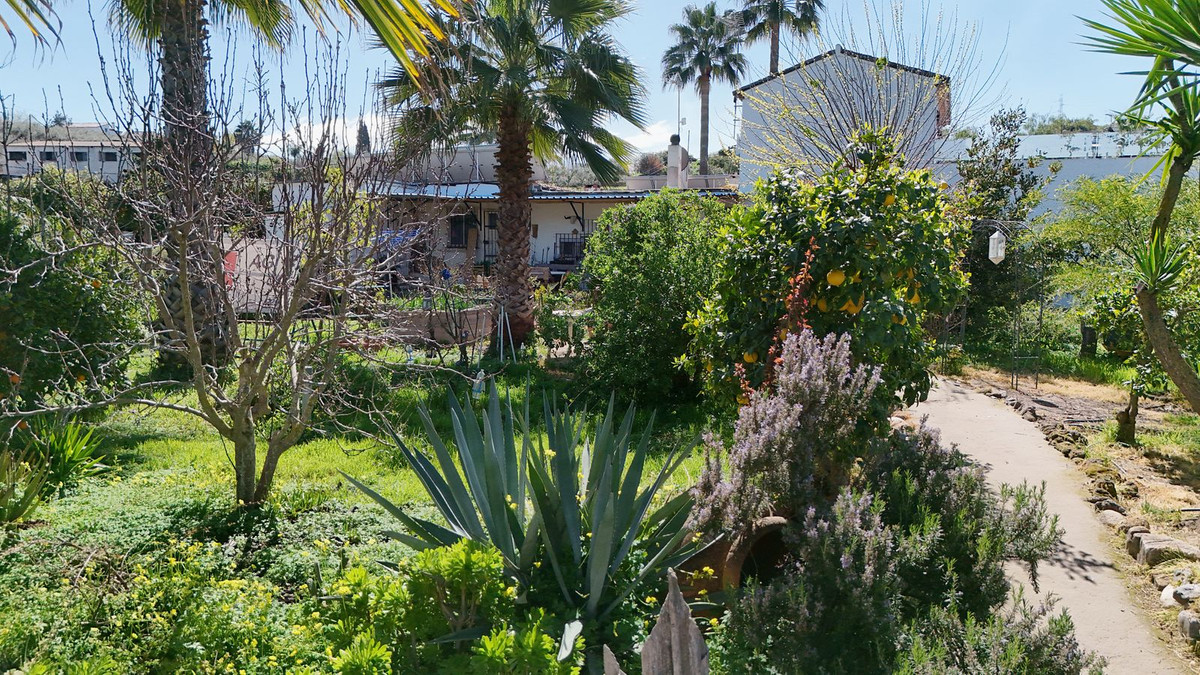 The plot is fully fenced and features a variety of fruit trees, including orange, olive, lemon, and pomegranate trees, which add a special charm to the property. There are also three storage rooms, providing additional practical storage space.