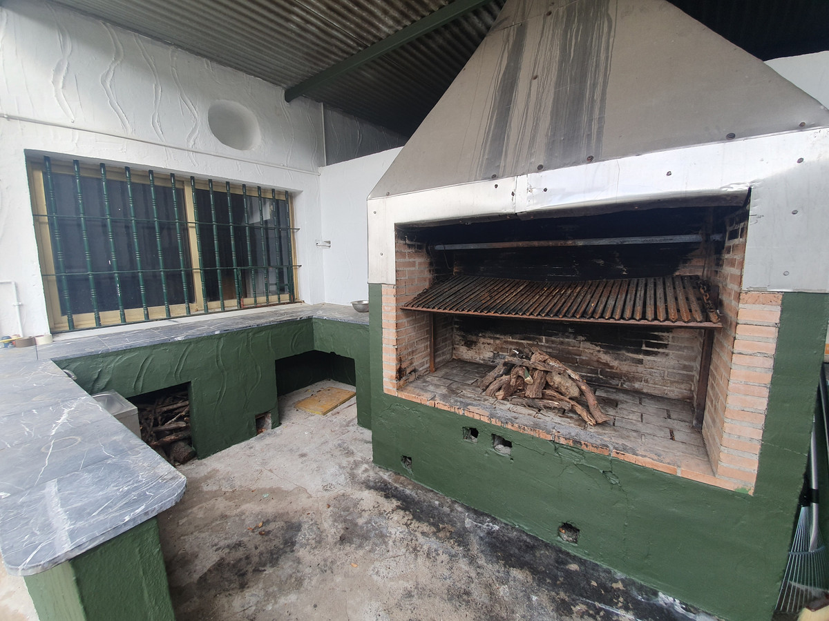 A typical Spanish roadside restaurant - a so called Venta - with a spacious open-plan area featuring high ceilings, covering 256 m². This space can be divided into different sections or rooms using wooden partitions. It has a large fireplace and a bar area with a 28 m² workspace for the waitstaff, including storage space and an independent kitchen of 37 m² with two access points, one directly to the bar and the other to the dining area. There are two restrooms (ladies and gentlemen), each measuring 11 m², a large covered terrace at the entrance, and a patio at the back with a barbecue and more space for outdoor seating. There’s also a small stage for flamenco performances and concerts. Additionally, there’s a beautiful and spacious garden with a playground for children and parking for around 30 cars or more. Finally, there is a private vehicle entrance, perfect for deliveries, and to allow private vehicles to reach the rear of the kitchen and the 44 m² storage area nearby.