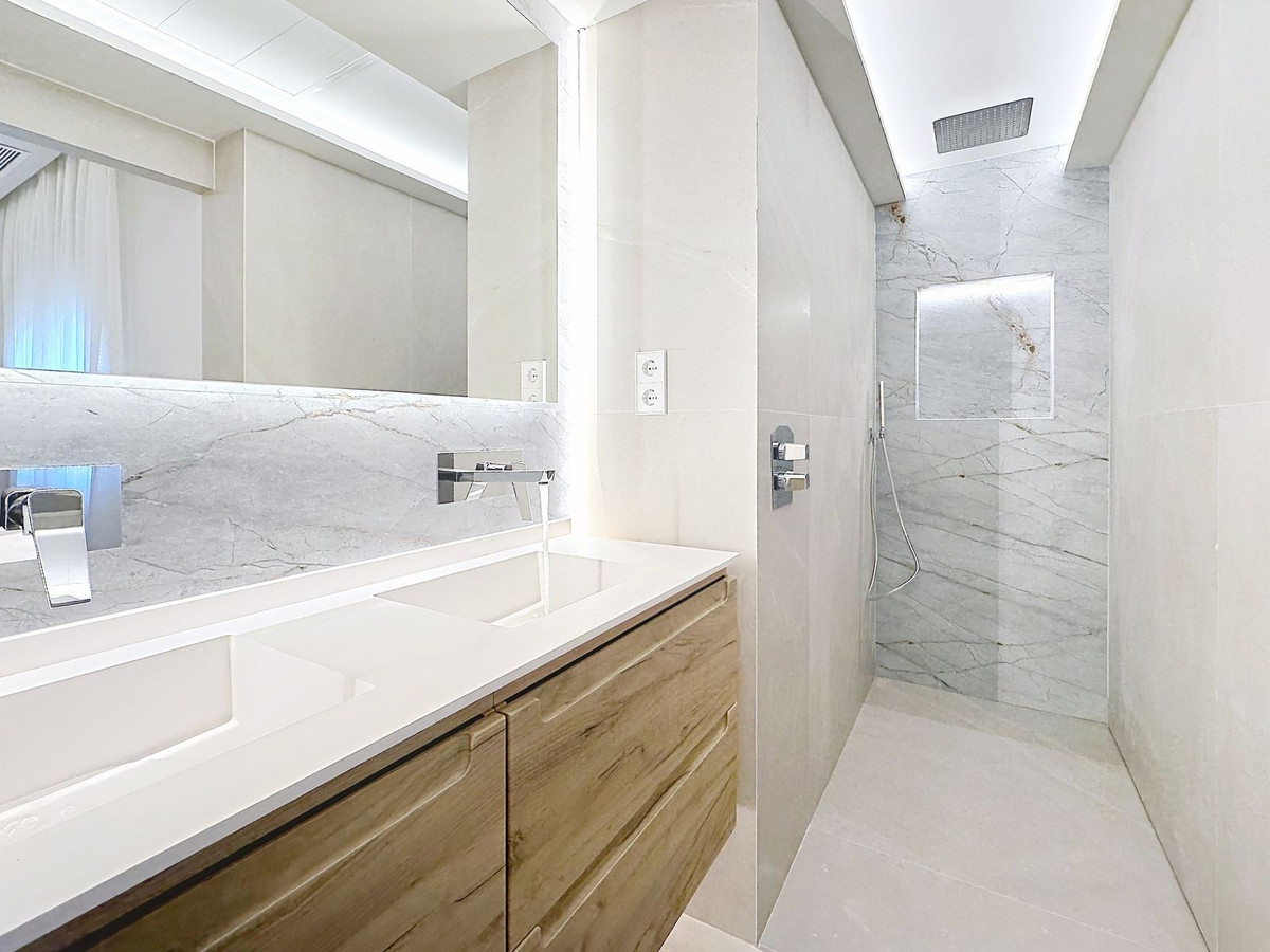 The 47 sqm terrace, fitted with an elegant Lumon glass enclosure system, becomes a truly versatile and privileged area: an additional living room flooded with natural light, perfect for enjoying the winter sun, relaxed dining in spring and autumn, or long evenings overlooking the sea in total comfort. A space designed to make the most of the Costa del Sol’s exceptional climate all year round.