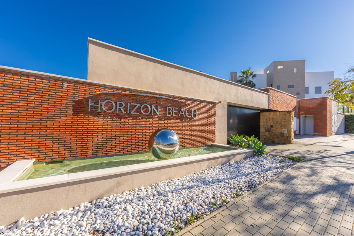 Modern-style apartment located on the beachfront, offering stunning sea views from which to enjoy spectacular sunrises, situated in the magnificent Horizon Beach development and built by the prestigious developer Taylor Wimpey, renowned for its contemporary design and high-quality finishes. The impeccably maintained community provides direct beach access, lush Mediterranean gardens, and an elegant heated outdoor pool for year-round enjoyment, along with refined communal areas designed for relaxation, featuring comfortable loungers and a spacious covered terrace in a privileged setting. Just a 5-minute drive from the center of Estepona and Puerto de la Duquesa, with all services close at hand, it includes a convenient underground parking space and a large storage room located right in front of the parking, making it an excellent beachfront opportunity that must be seen.