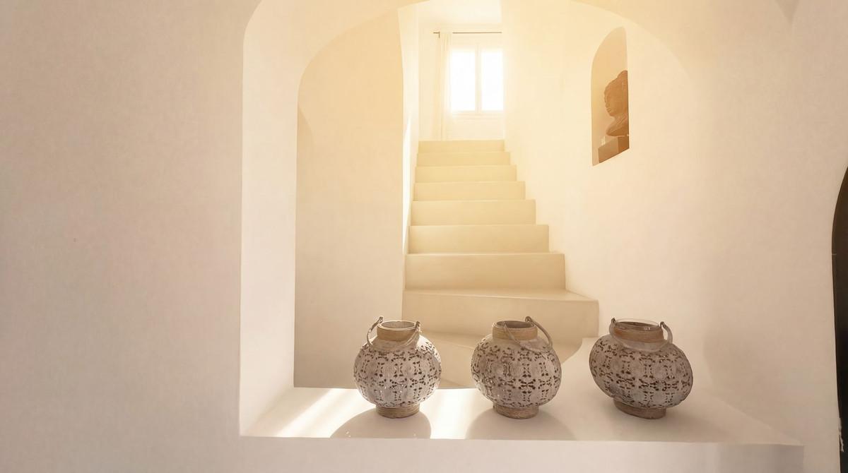 Your journey home takes you along the characteristic forest road of the Barranco Blanco, immediately surrounded by the healing scent of pine trees and wild thyme. You pass the imposing gate and drive past your own fenced tennis court and the completely detached guesthouse, which is situated at a respectful distance from the main villa. This ensures that both you and your guests enjoy complete discretion.