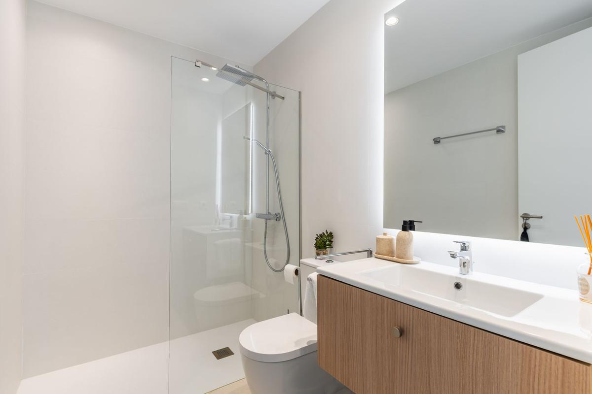 At the heart of the home is a bright open-plan living and dining area. Large windows lead directly to the terrace and private garden, allowing you to fully enjoy natural light and the Mediterranean climate all year round.