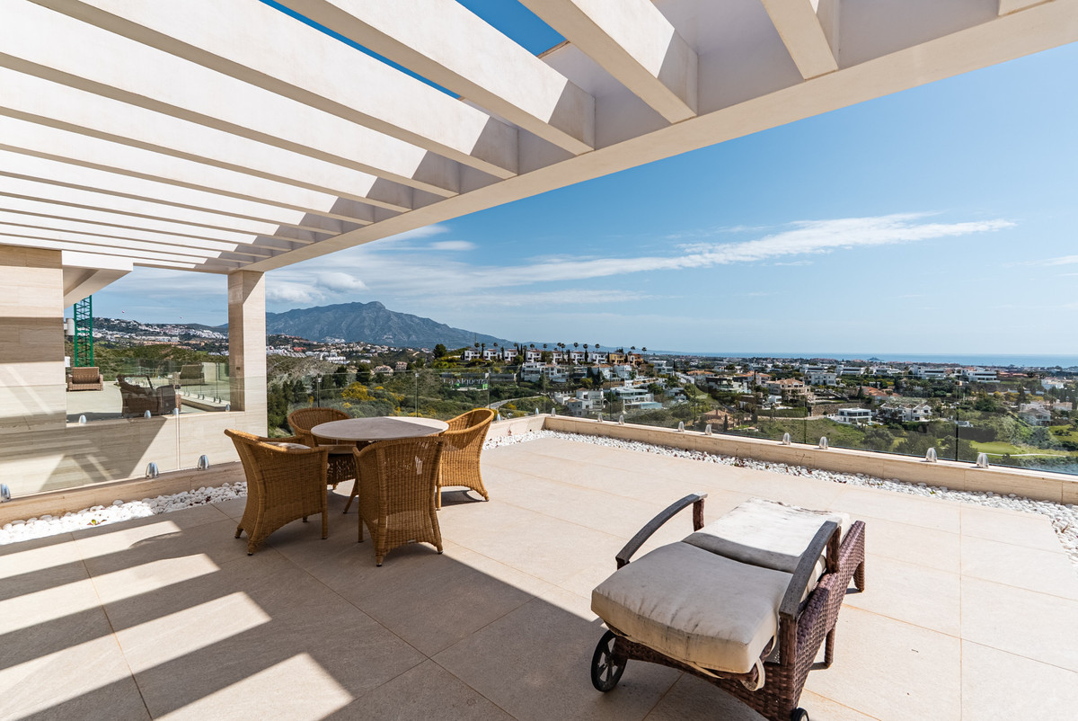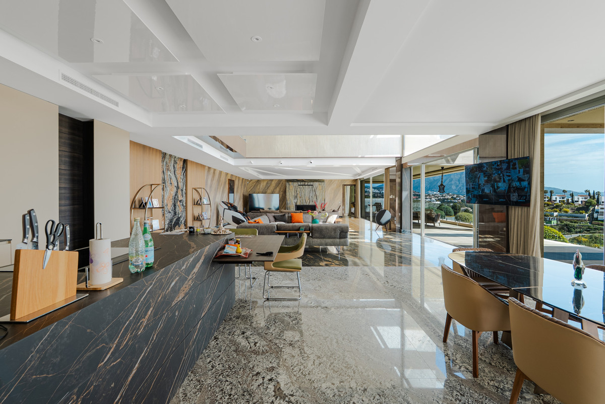 Positioned on an elevated and private plot in one of the most sought-after residential areas of Benahavís, this exceptional contemporary villa offers uninterrupted panoramic views across the Mediterranean Sea, golf valley, and surrounding mountains.